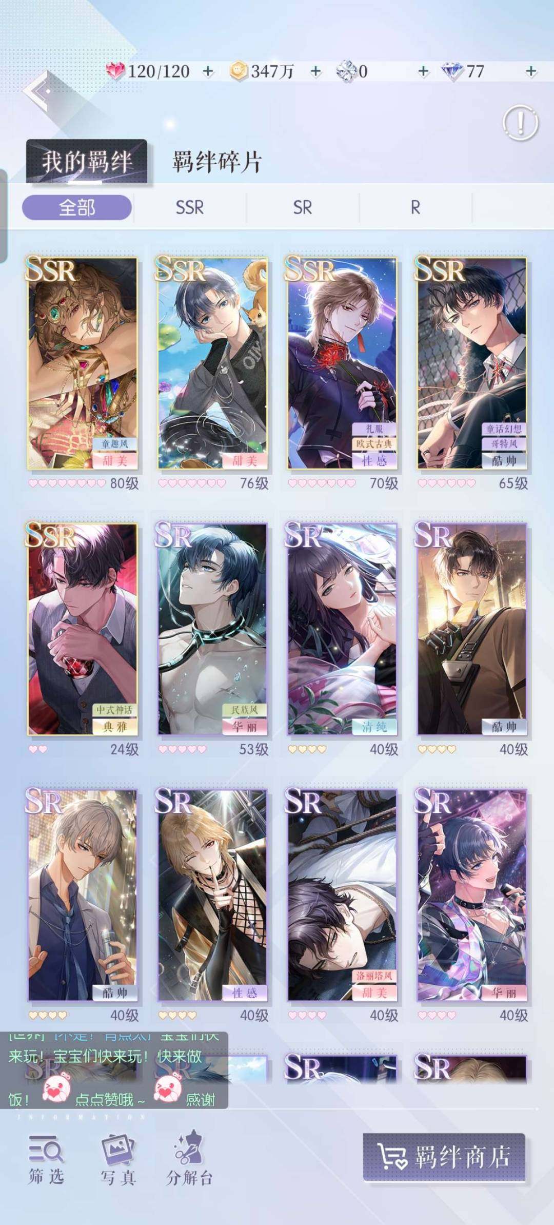 亮点: 开服就在玩,充了2w多了,除了开服第一期每期的潮流密码都全,每期的活动池子都抽全了(除新年新出常驻池) ,ssr羁绊全
