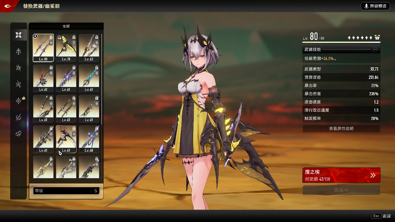 等级:57 拥有角色数:11 拥有近战武器数:6 拥有远程武器数:6 奥特赛德,贝蕾妮卡,菲娜,丽蓓卡,琳恩,莉兹贝尔,赛琪,松露与榛子 春玦戟,辉珀刃,枯朽,失乡的獠牙,希冀的丰稔,铸铁者 剥离,弧光百劫,蓝色脉动,祈请净火,嘶鸣,织梦的白羽