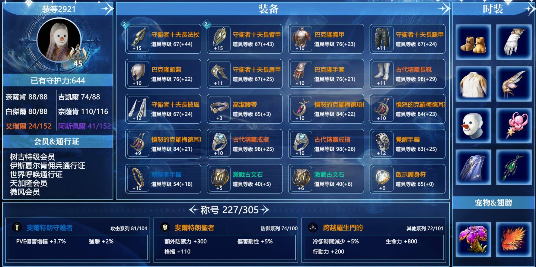 天族45级2246守护星,360守护力,树古特级会员,伊斯夏尔肯佣兵通行证,世界呼唤通行证 天族-白傑爾
