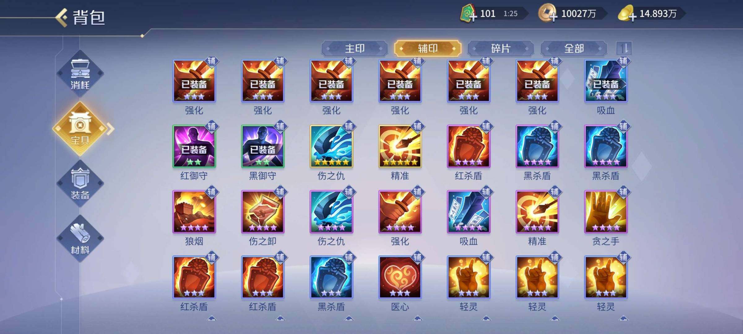 卖家说:鬼面套,骠骑芈月,四星婉儿,V15 英雄 骠骑芈月,关羽,法家门神,鬼面吕布,商偷姬亮包刘丰玄纣 四星婉儿89元神 宝具 主印:1法1骠1战神9侠4傲2众叛7驭5控3蝶2火4豹1悍北 辅印:10杀贪,4强化,10吸血,5精准,3贪手,1探囊,3轻灵,3生有,3万箭,4伤贪,3狼烟,3伤卸,2伤削,3伤仇,10盾 整套: 五星:1鬼面 四星:1套复仇,2套沉鱼,3套治愈,8套轻影 散件:诋毁刀,投机2件,奸雄2件,平冤1件