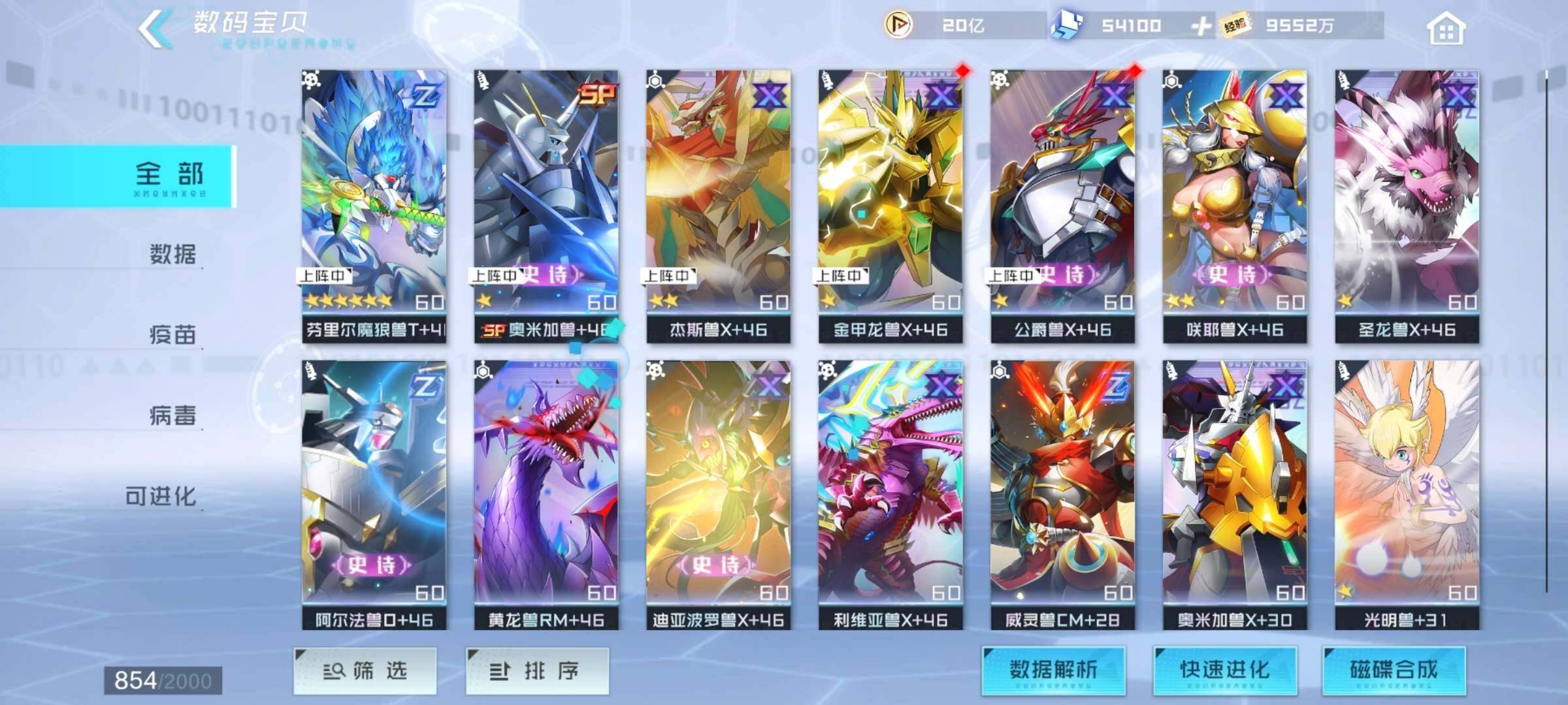 实名: 可修改 亮点: 16只完全体,6只究极体,还有多块魂石可供进化化