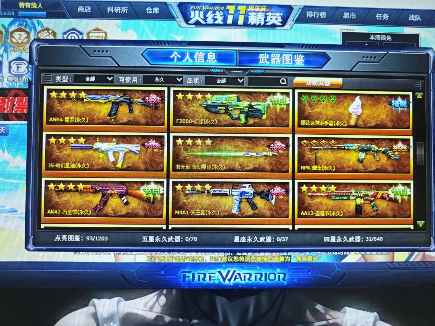 卖家说:火线精英手机版4399三区102级 满阶镭龙 男亚瑟 女亚瑟 李吒 泰坦之影-劳拉 生化角色 年兽 小丑 蜘蛛 魔蛇皇后 机甲角色 阿巴顿 奥修斯 机能烈影狂师 龙域 幽灭 兔兔刀 4满配英雄枪 殇影骑兵差一个配件 羊枪 圣龙之牙 全场最佳榜总榜11名 特殊击杀榜总榜19名