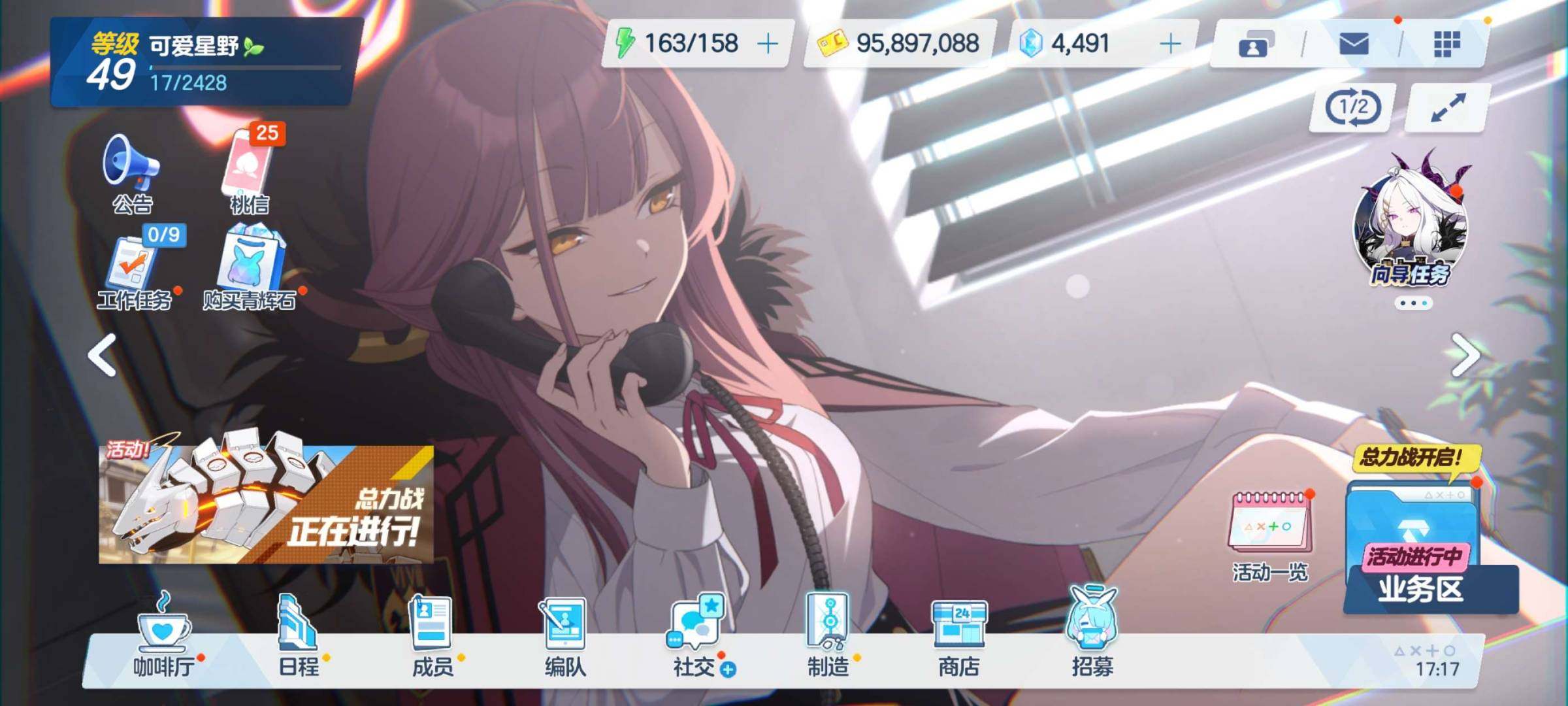 亮点: 人权全覆盖,有初音,7万钻,28抽,总力战没有卷,在二档,pvp最高第一