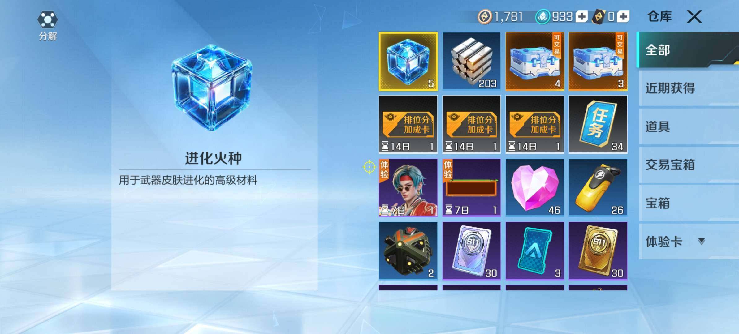 卖家说:QQ限制了,没时间玩了,有进化枪,有2个飞行器,有一个传说皮肤