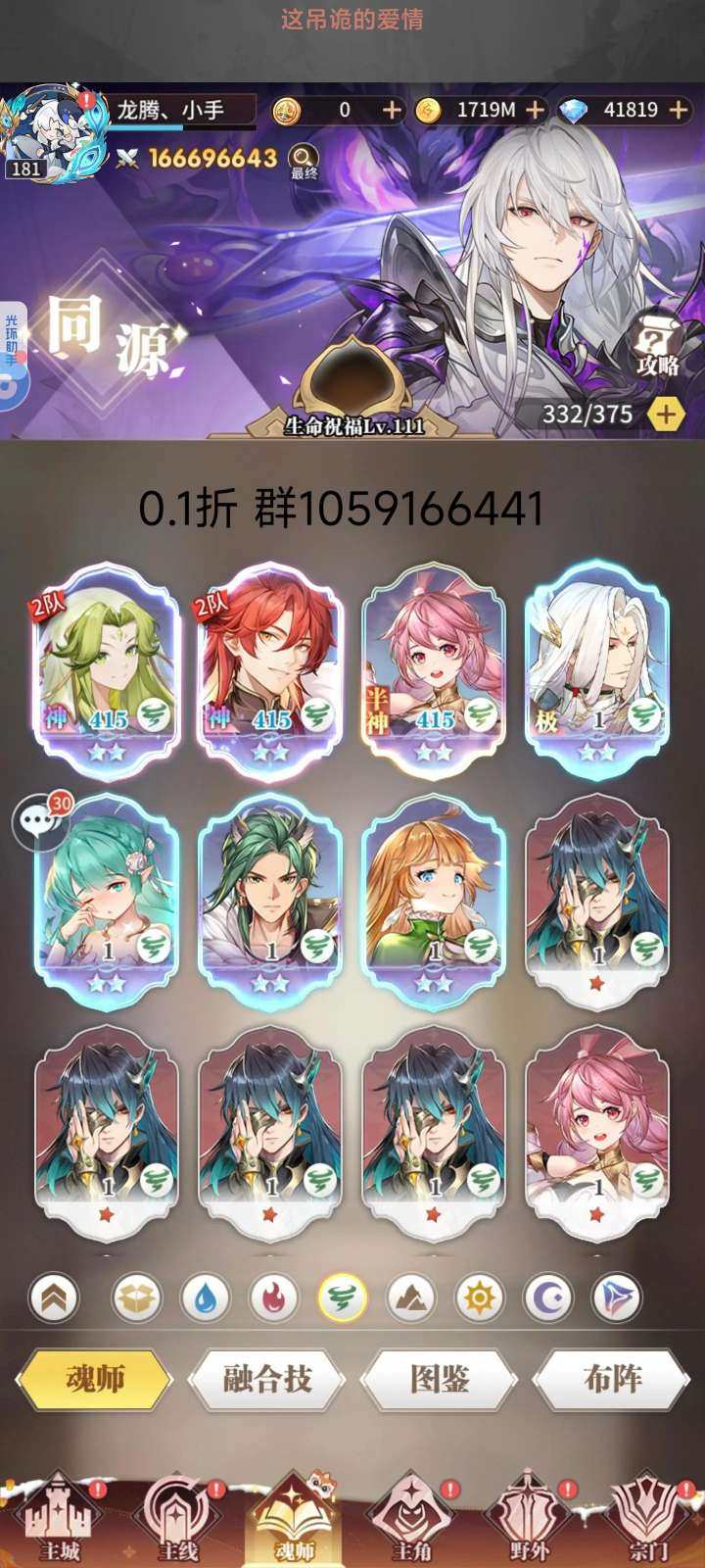 亮点: 高氪度脱坑,神暗器,神魂导器热门魂师满配,资源还很多