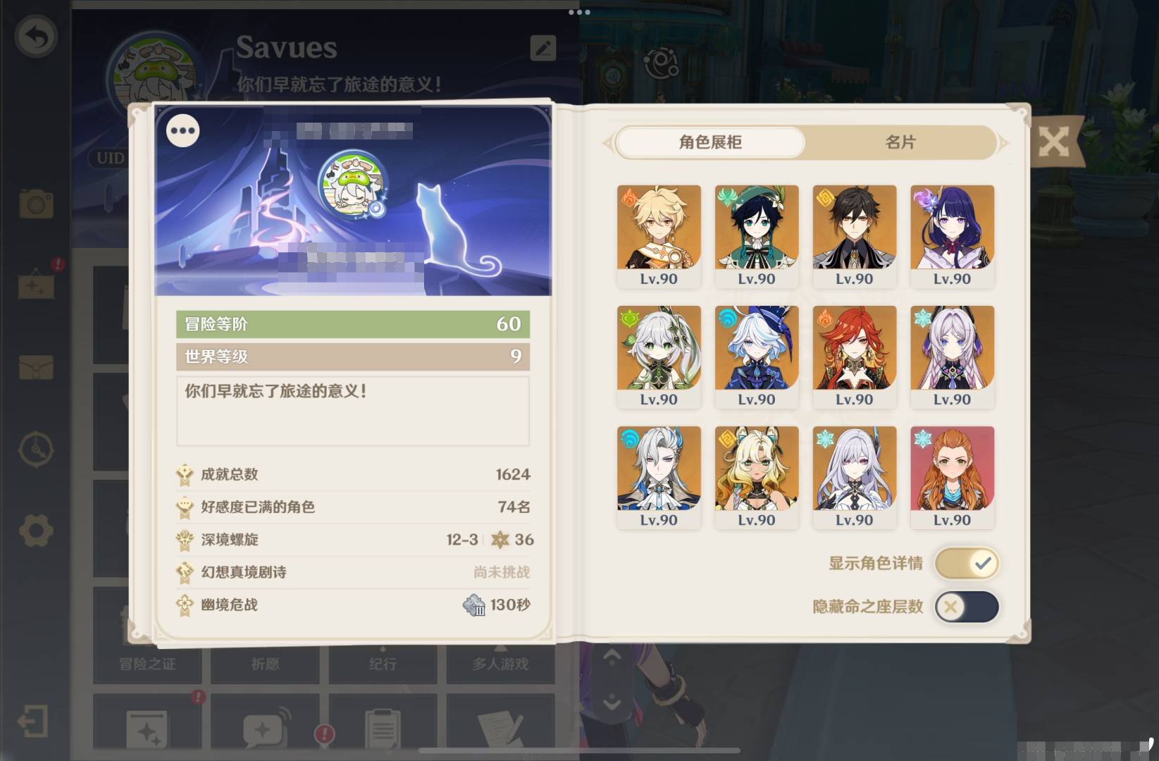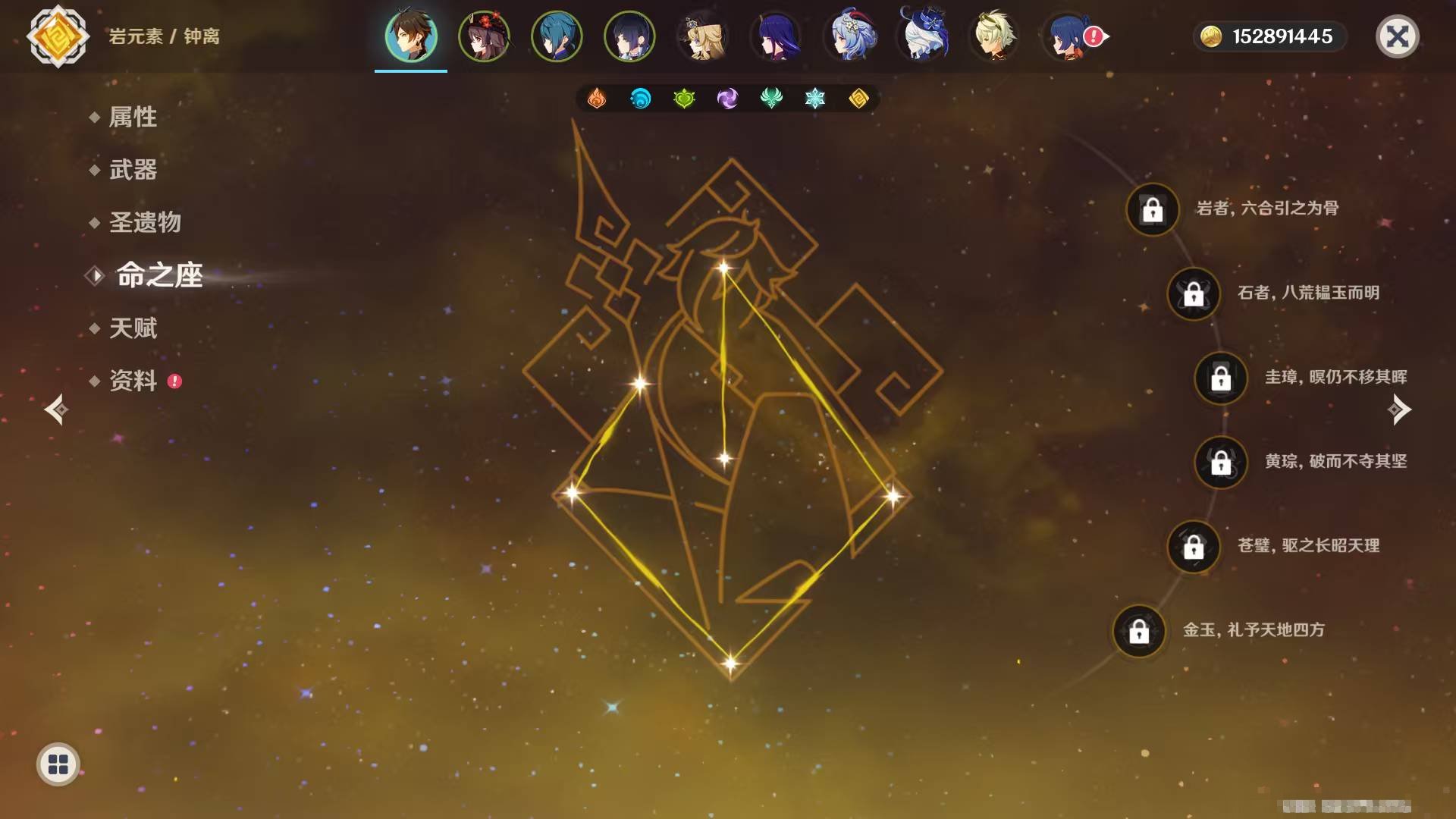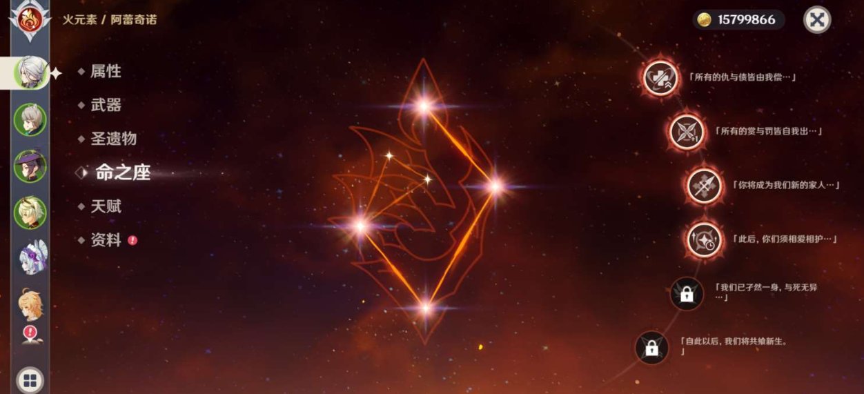 拥有金色角色: 爱可菲,玛薇卡,克洛琳德,芙宁娜,枫原万叶,胡桃,迪希雅,提纳里,刻晴,琴,七七 亮点: 56级