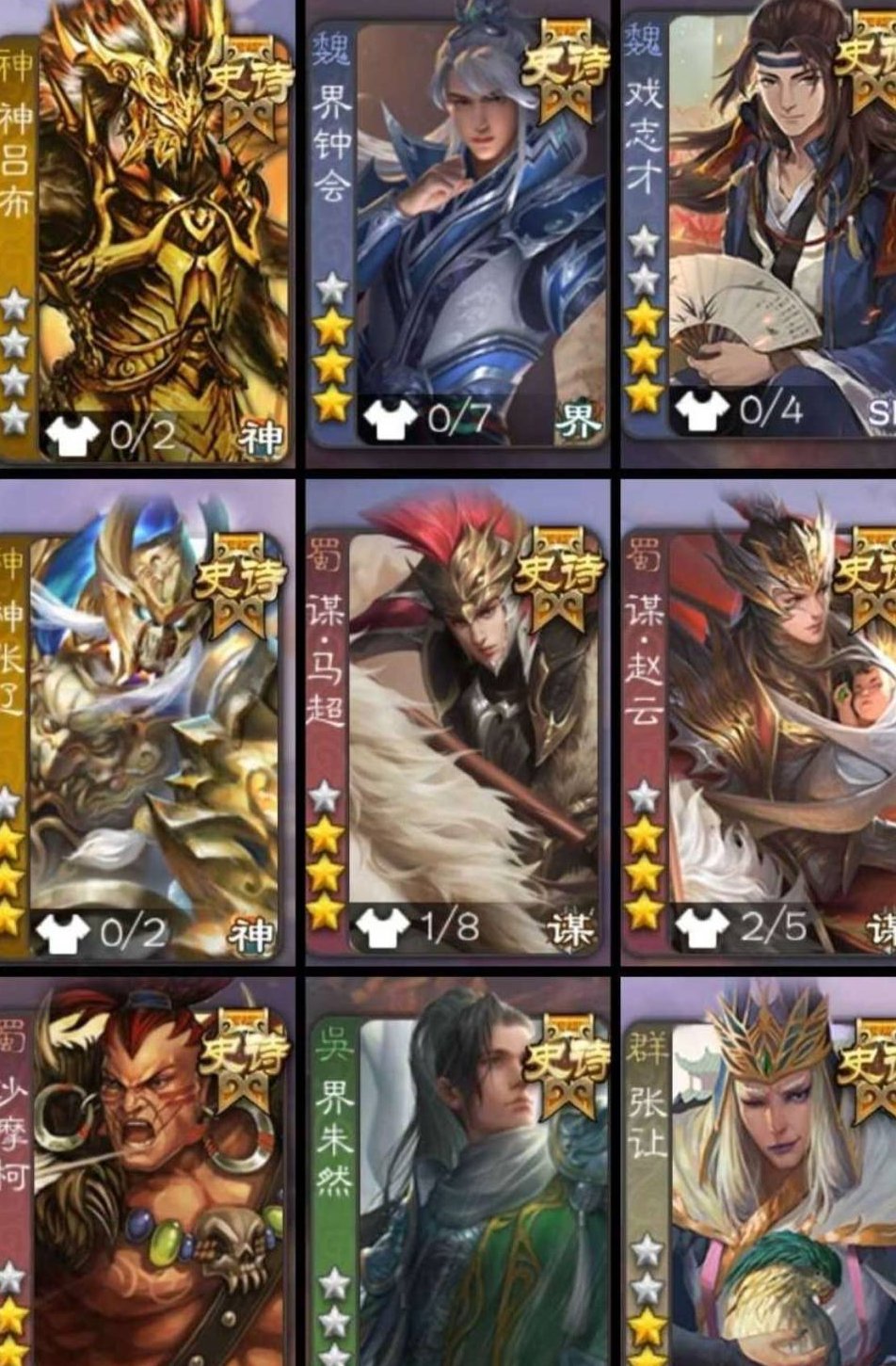 亮点: 友诸葛亮,神赵云梦之回廊皮肤。骠骑大将军,年卡开通,十常侍+司马昭+神华佗+7561浆魂➕23619羽毛,史诗武将界钟会,戏志才,程昱,司马昭,曹纯,谋赵云,马云禄,谯周,十常侍,