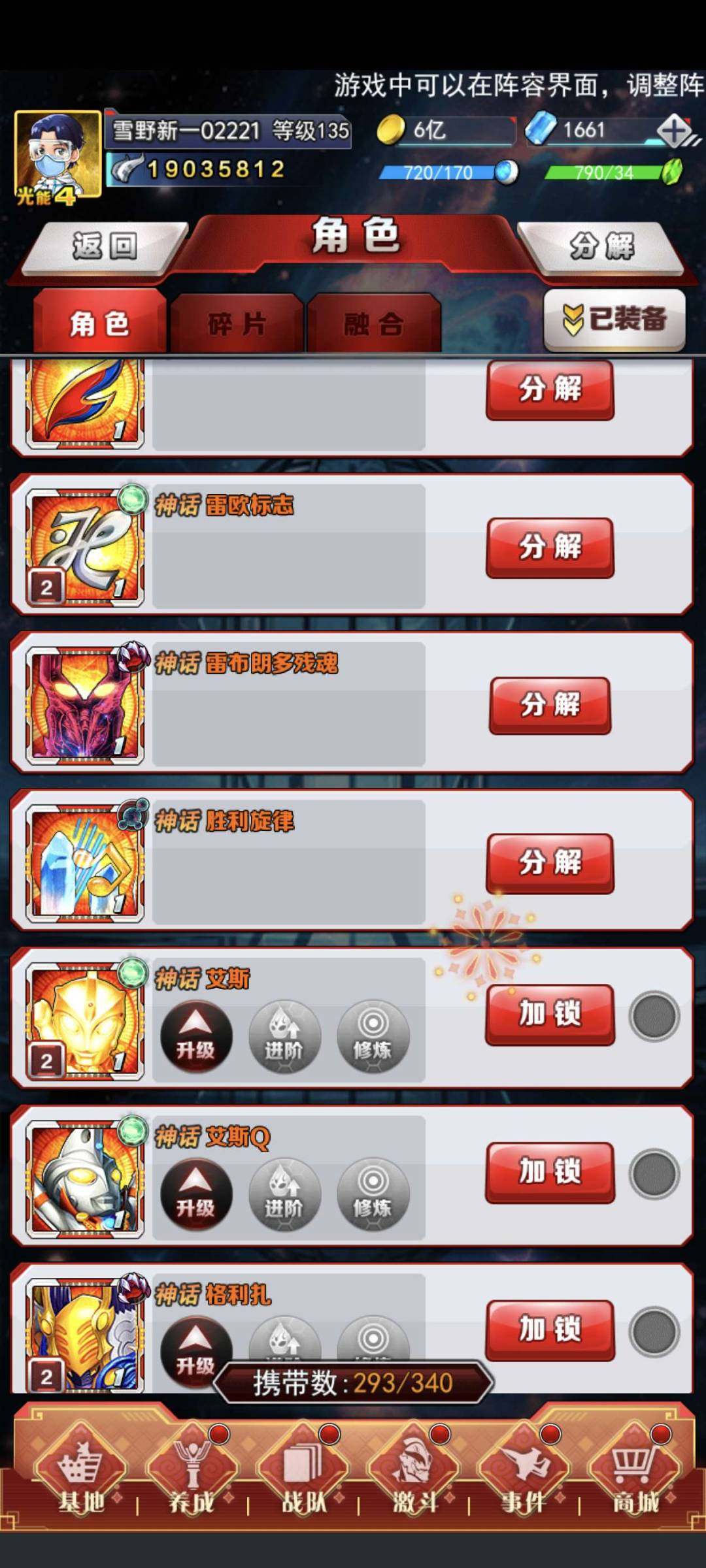 亮点: 我号充了200,还有一个通行证角色,还有几个18元,230万的时候申请进入神域的战队神域战队的队长有他好友,一直的话就能获得诺亚了,还有十几个奥特之星