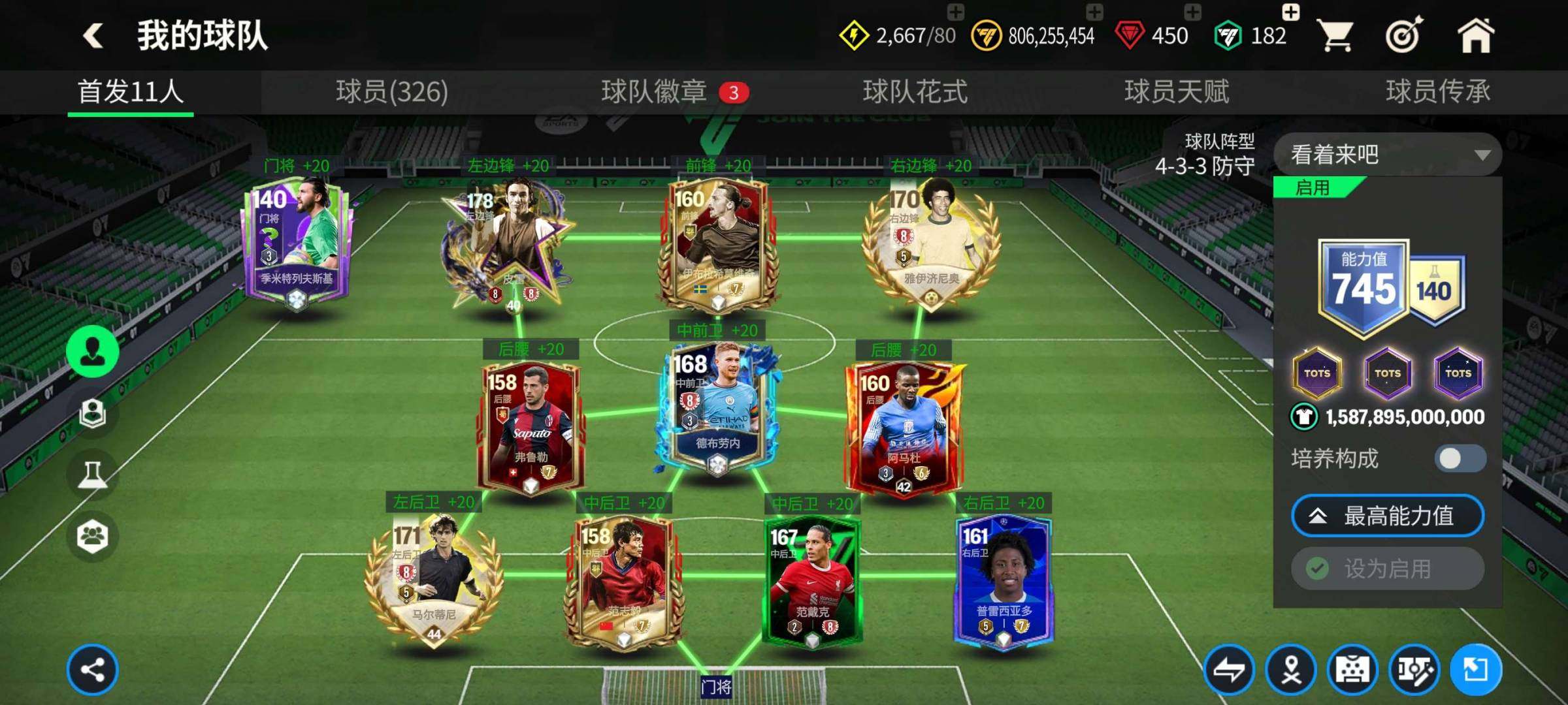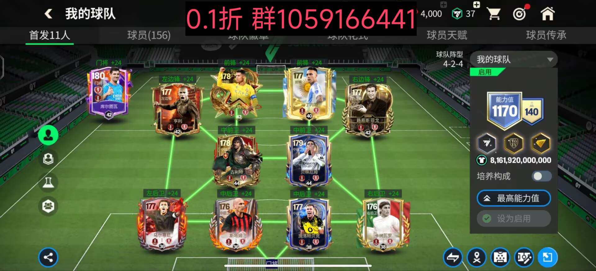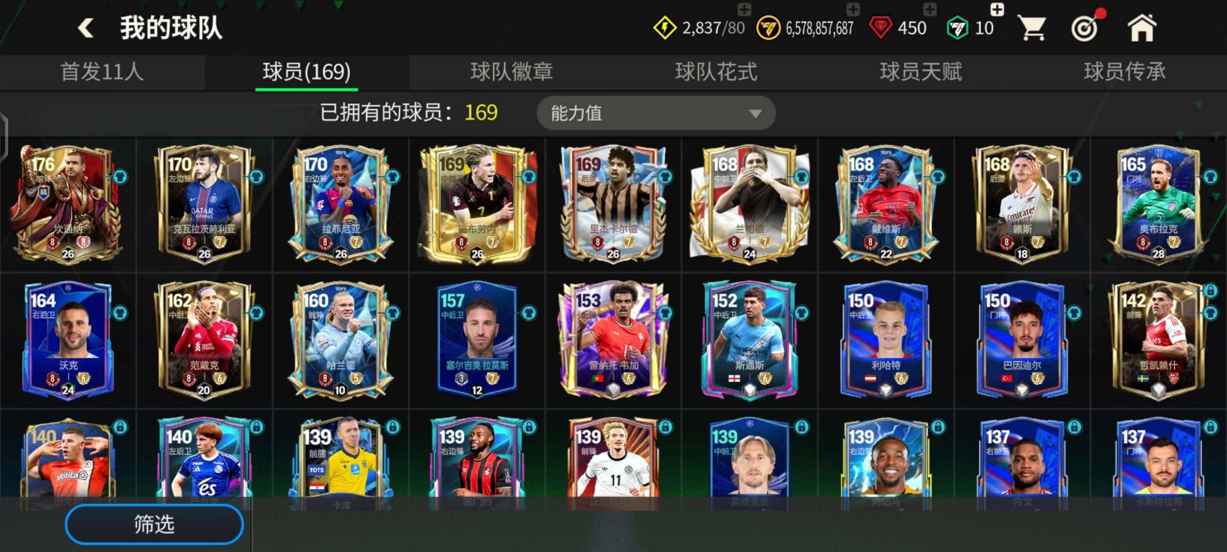 实名: 不可修改 亮点: 1403能力值,8阶球员9个,142球员有3个,141球员有9个,140球员有16个