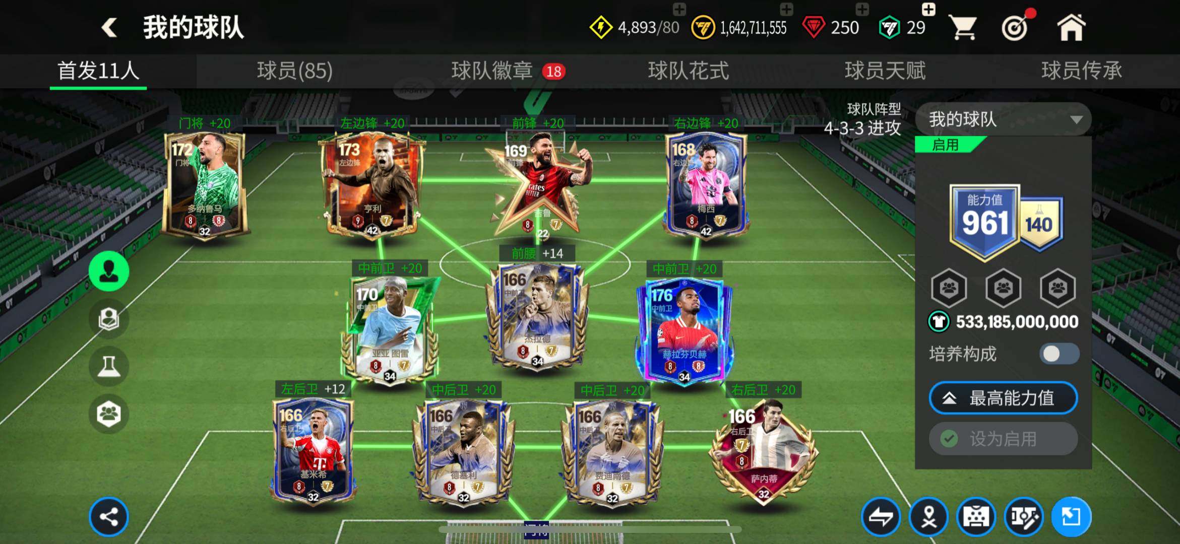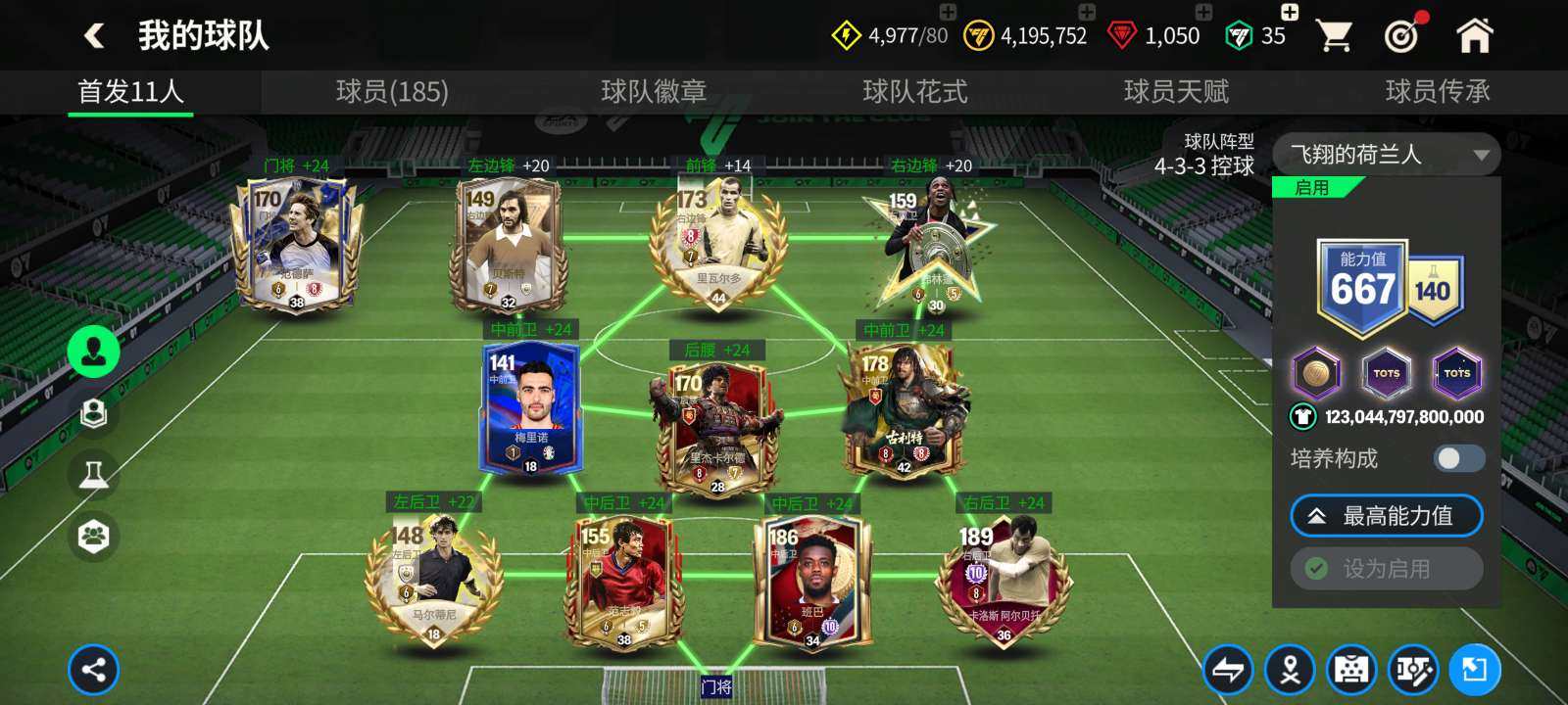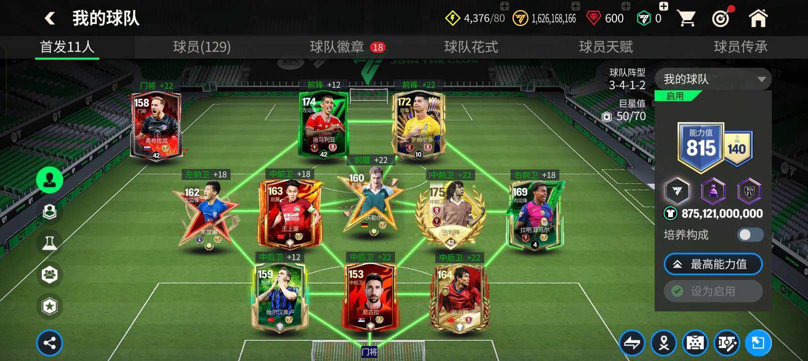 实名: 不可修改 亮点: 1403能力值,8阶球员9个,142球员有3个,141球员有9个,140球员有16个