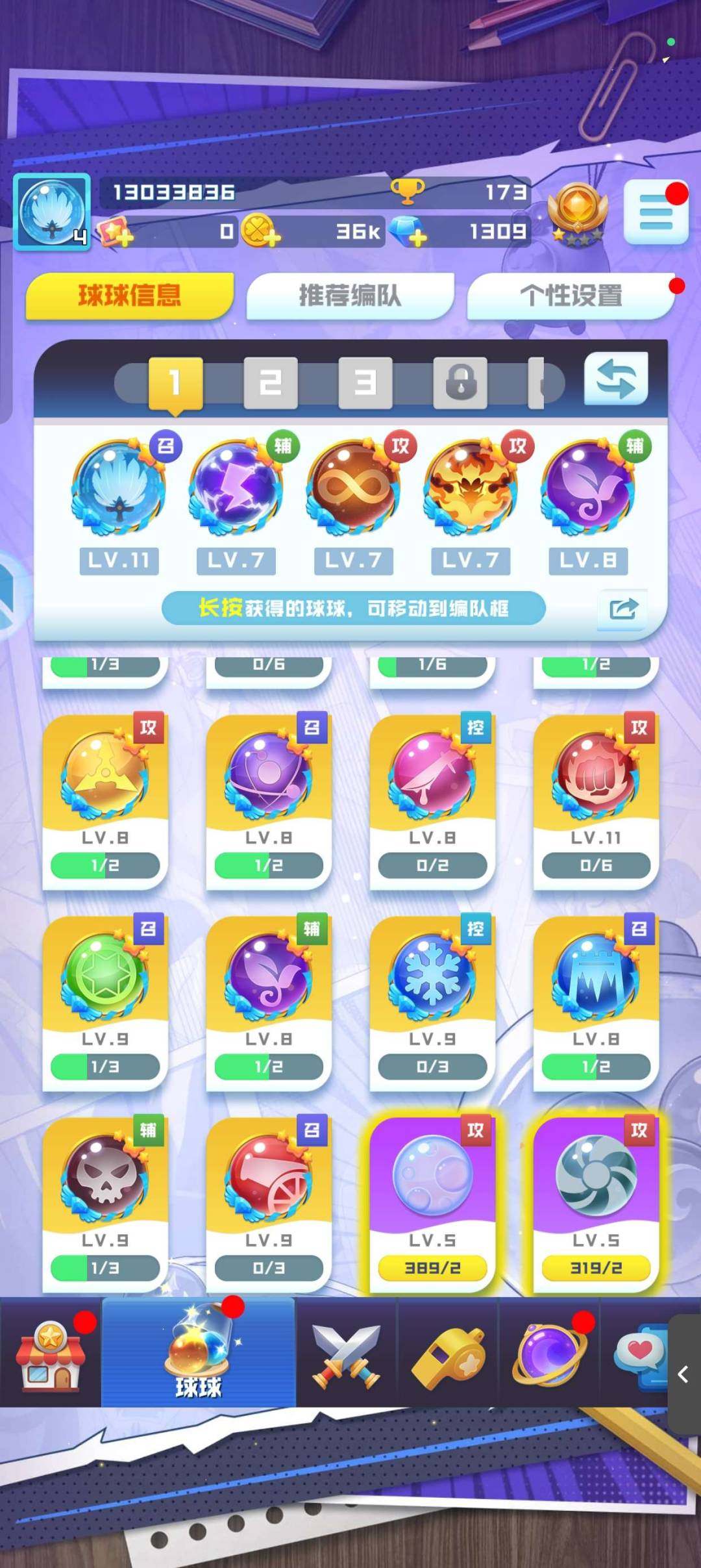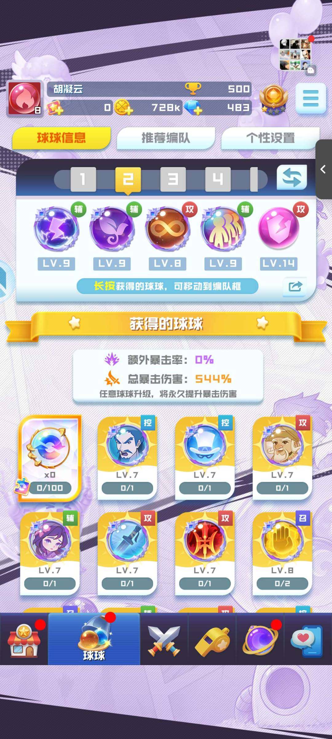 亮点: 除了一部分非得氪金的球基本上是全图鉴了,10圣差2个11圣11天使8圣盾8神掌9魔王差1个10魔王。