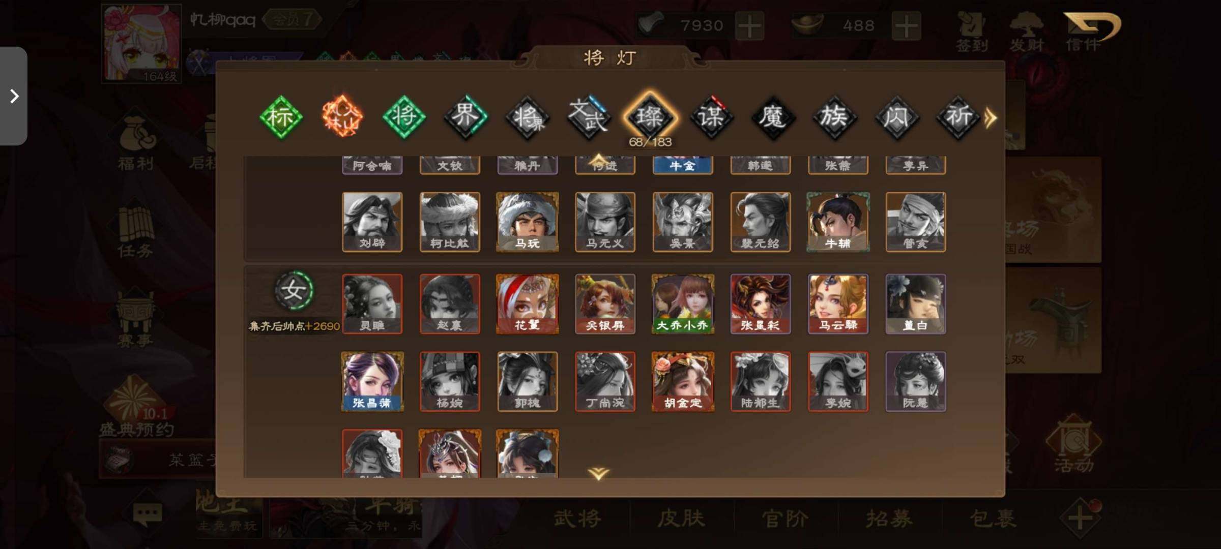 亮点: 卧龙凤雏,谋关羽,张陵,董昭,曹曦,牌王,神赵动皮,还有各种限定皮,传说皮