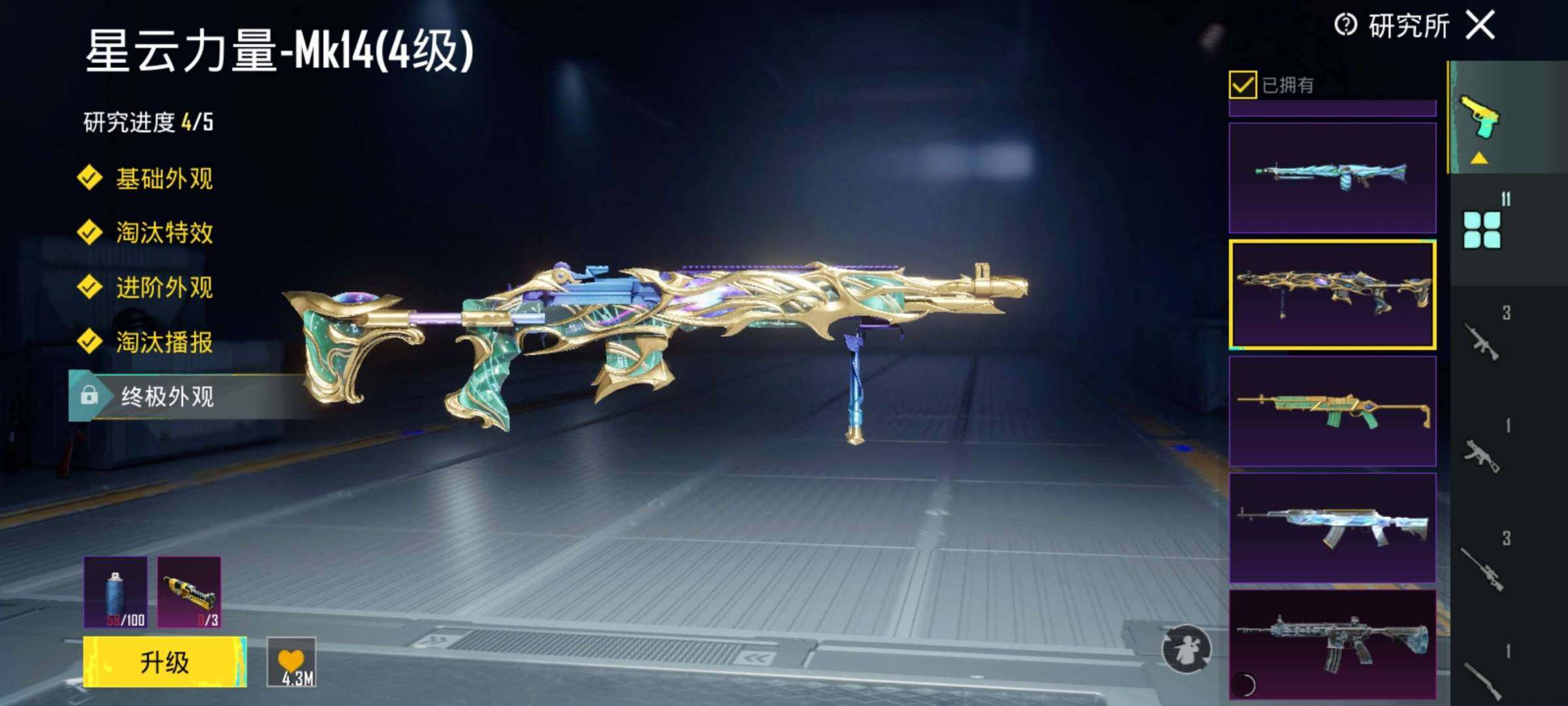 卖家说:四成长带烟雾,98k➕m24➕mp5k➕m4➕粉烟 4成长加粉烟➕自带改名卡➕滑雪镜➕工坊好物