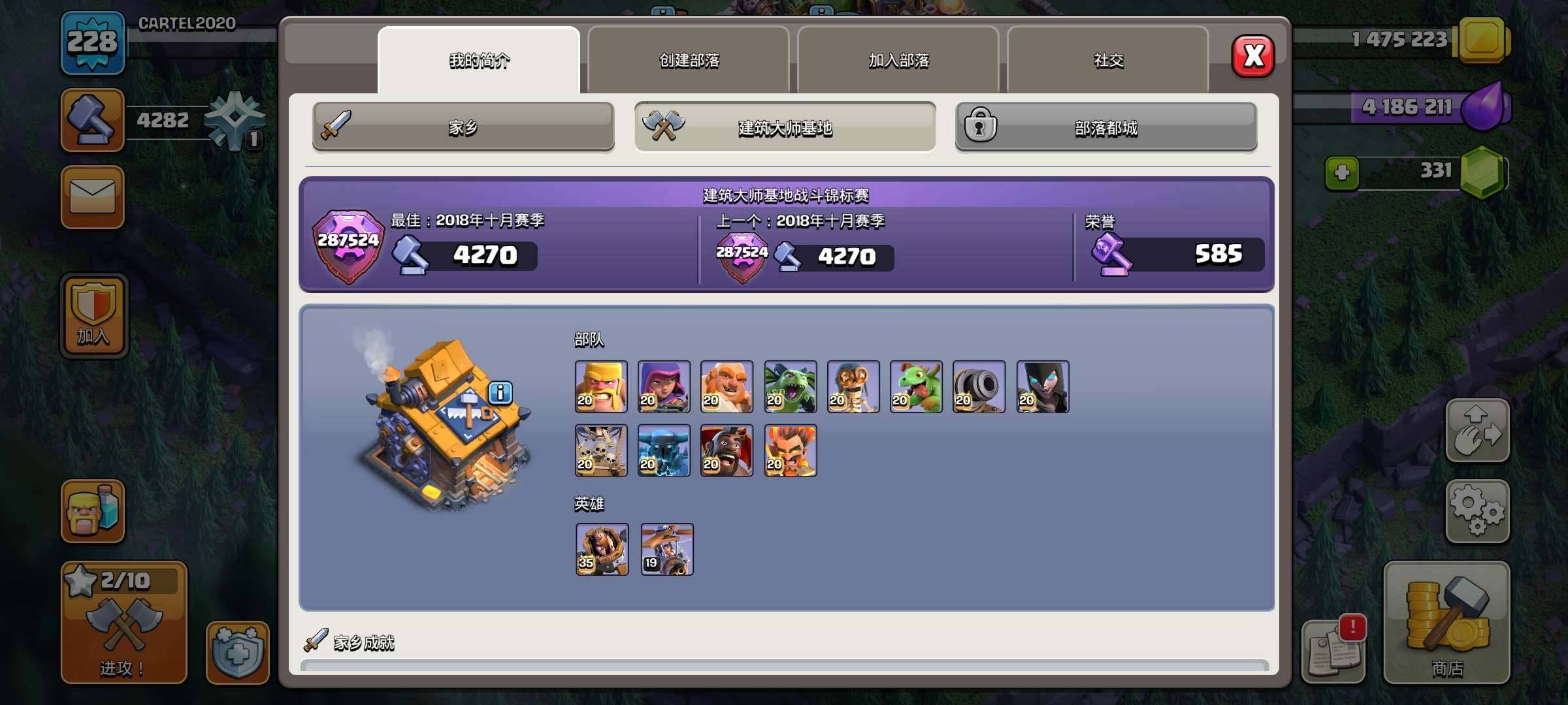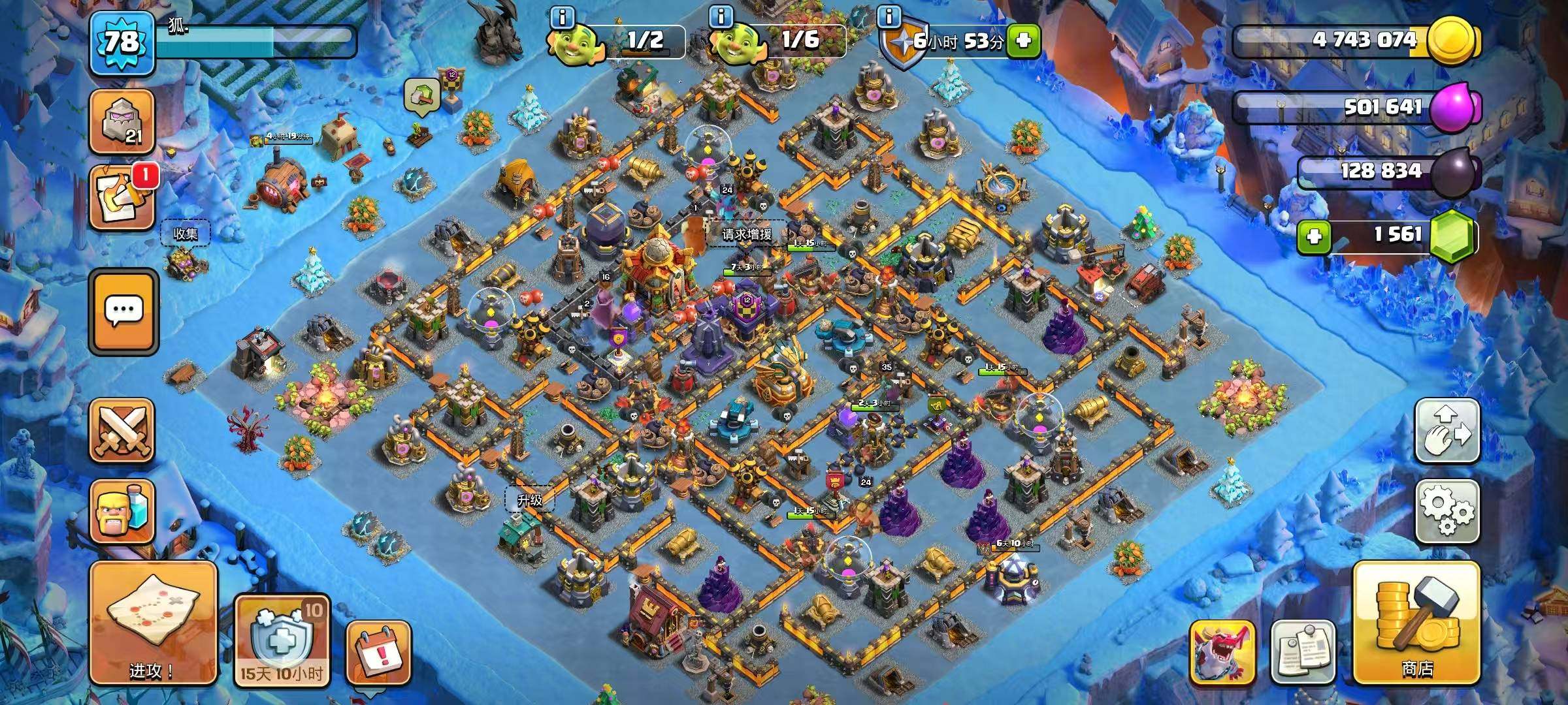 亮点: 国际服17本15-24圣诞树(差23年圣诞树)✔9件史诗装备✔340兵营✔重防御科技优秀✔夜世界全满✔可换邮箱✔