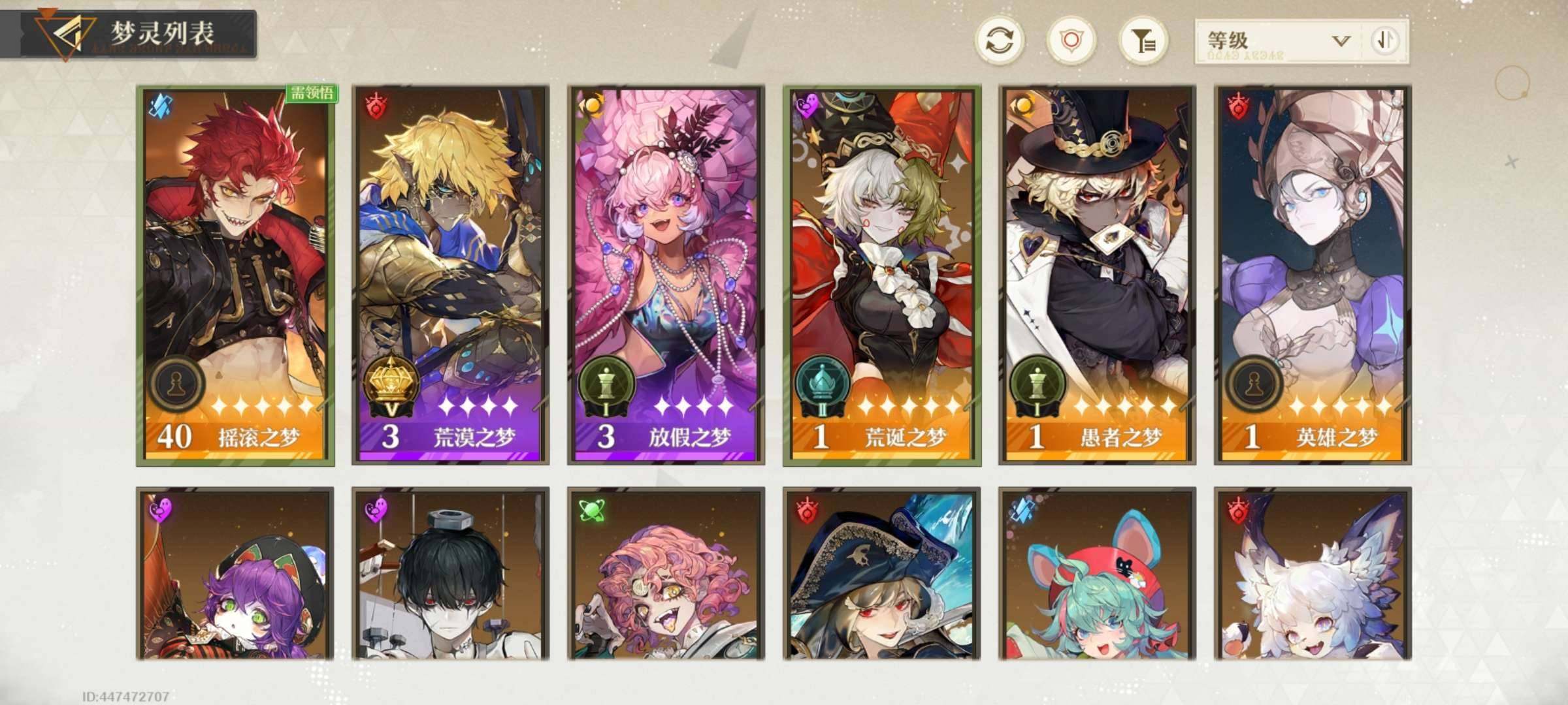 角色所在区服: 美梦连连 亮点: 14金,暴富2命满练度,镜3命练度,考试2命满练度,春,甘霖,迷惘零命满练度,四星基本满命