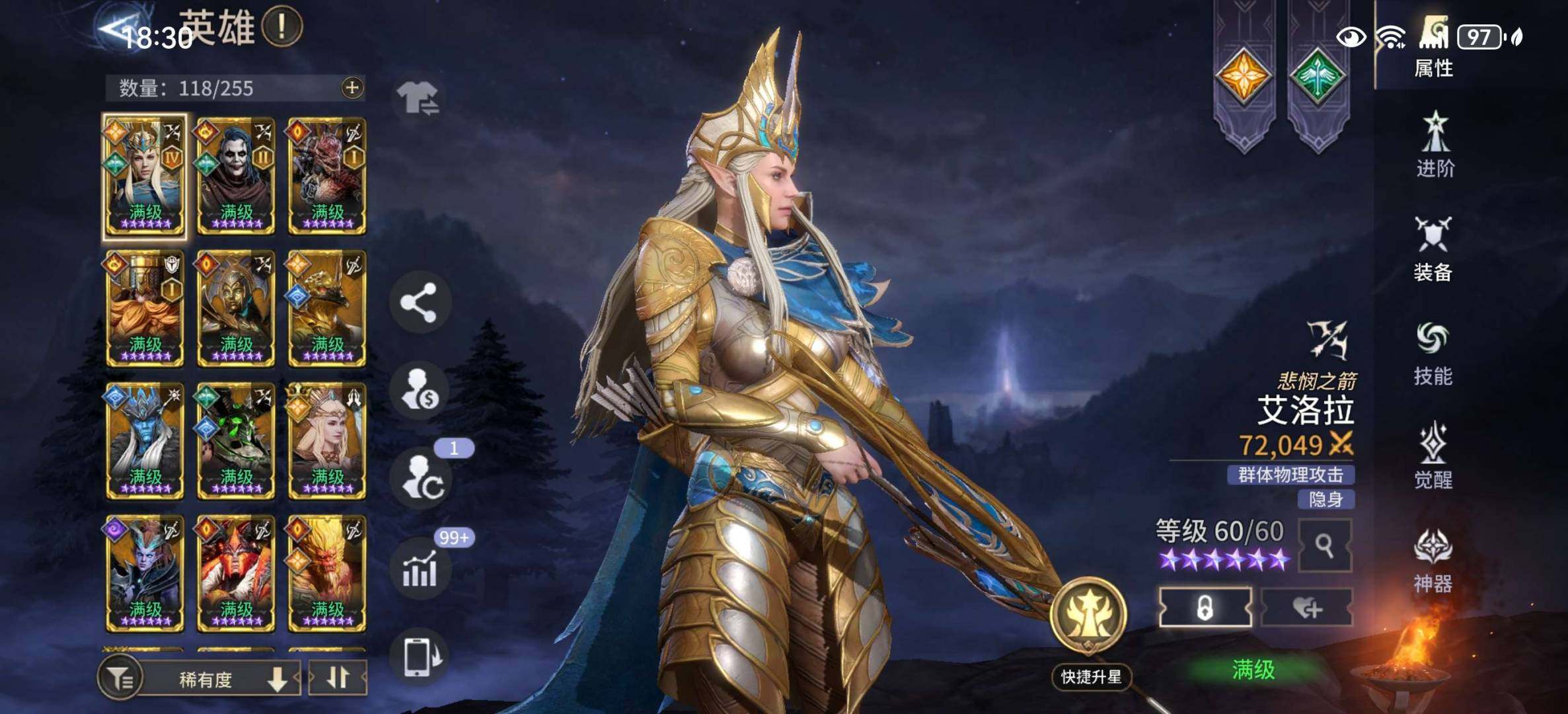 角色所在区服: 2区 亮点: 泰坦12+,资源多多,强力英雄基本都有,可小刀