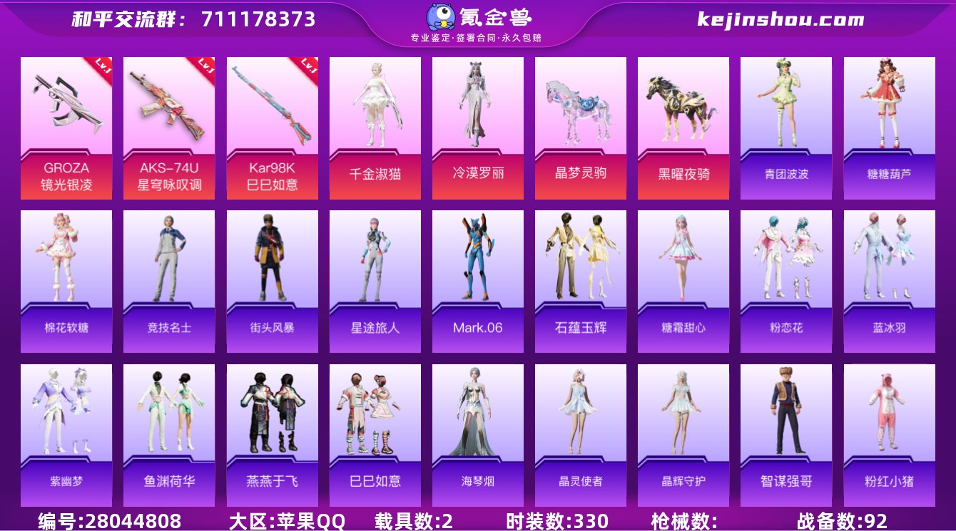 AL602788 【无敌战神框】 热力值37688 枪皮数量120 粉装数7 套装数量87 时装数330 载具数2 特效枪总数109 战备数92 【有】