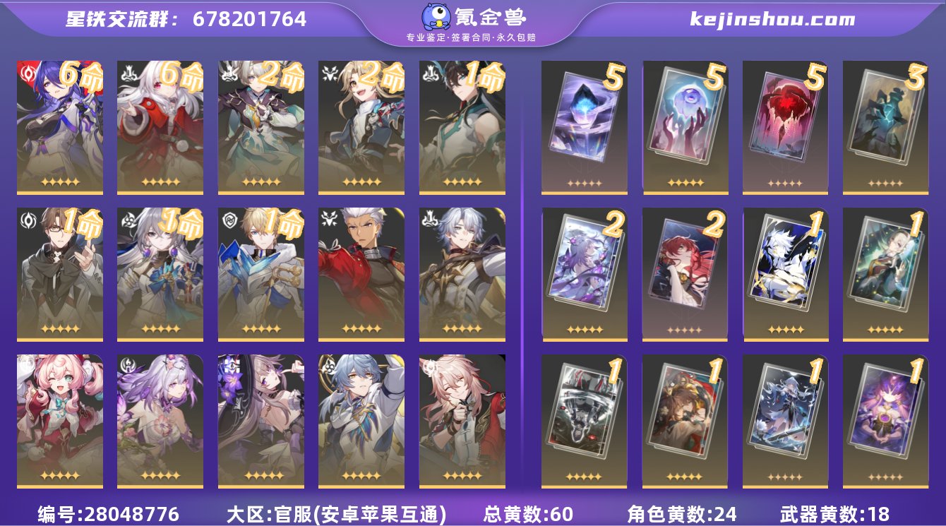 6+1黄泉,0+2瑕蝶,0+1白厄,2+1流萤,1+1龙丹
