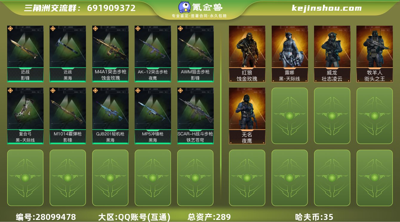 hf6625 总资产289m+纯币35m+s5赛季3x3安全箱+饰金玫瑰红狼全套+黑天际线全套+影峰全套+黑海全套+s2s3s4s5赛季通行证+烽火等及60 特勤部门等级可以 永久包赔