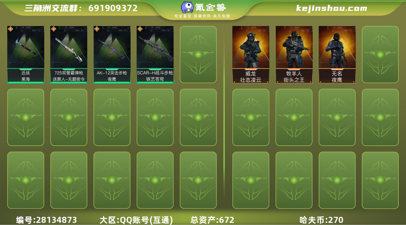 hf6734 总资产672m+纯币270m+s5赛季3x3安全箱+黑海刀+s2s3s4s5赛季通行证+烽火等及60 特勤部门等级很高 永久包赔