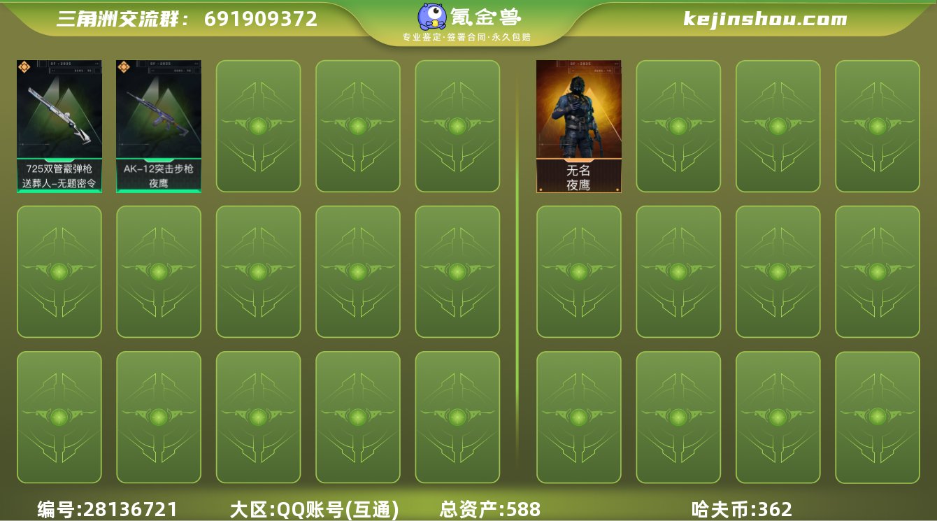 hf6756 总资产588m+纯币362M+s4s5赛季通行证+烽火等及60 特勤部门等级极高 永久包赔