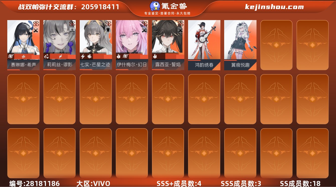 战双满级账号 多ss➕角色 赛琳娜 囚影 卡列 誓炎 露娜黑卡皮 六星武器十几把