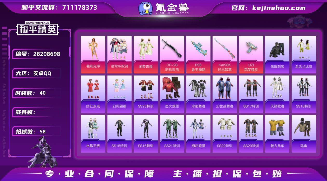 满级UZI筑梦精灵/浪漫天命 可改实名 4特效枪3粉装 40套装58枪皮 4级P90金丰海韵 1级Kar98K巳巳如意 1级DP28豹影疾电 闲梦青缨 星穹咏叹调 羲和光序 天籁歌者 海盐绵绵冰 怀庆长公主 龙舌兰冰茶 幻彩翩翩 绚烂繁星 水晶王族 福星高照 鹰眼刺客 冰冻风暴 王牌印记2 热力值18308 K20426 和平精英买号包赔带二次营地ID:906017583