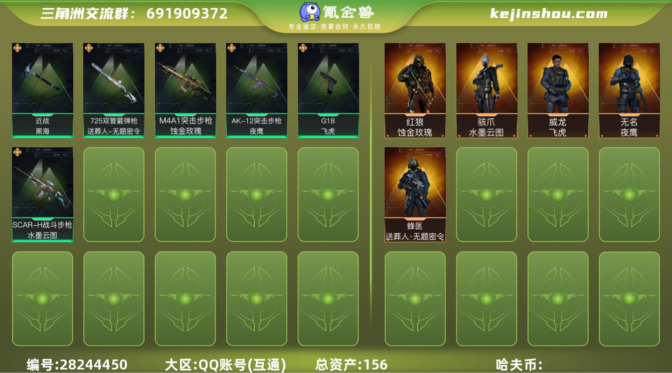 hf7072 总资产156m+饰金玫瑰红狼全套+水墨云图骇爪全套+黑海全套+飞虎全套+s4s5赛季通行证+烽火等级60 特勤部门等级很高 s4赛季巅峰战神称号 永久包赔