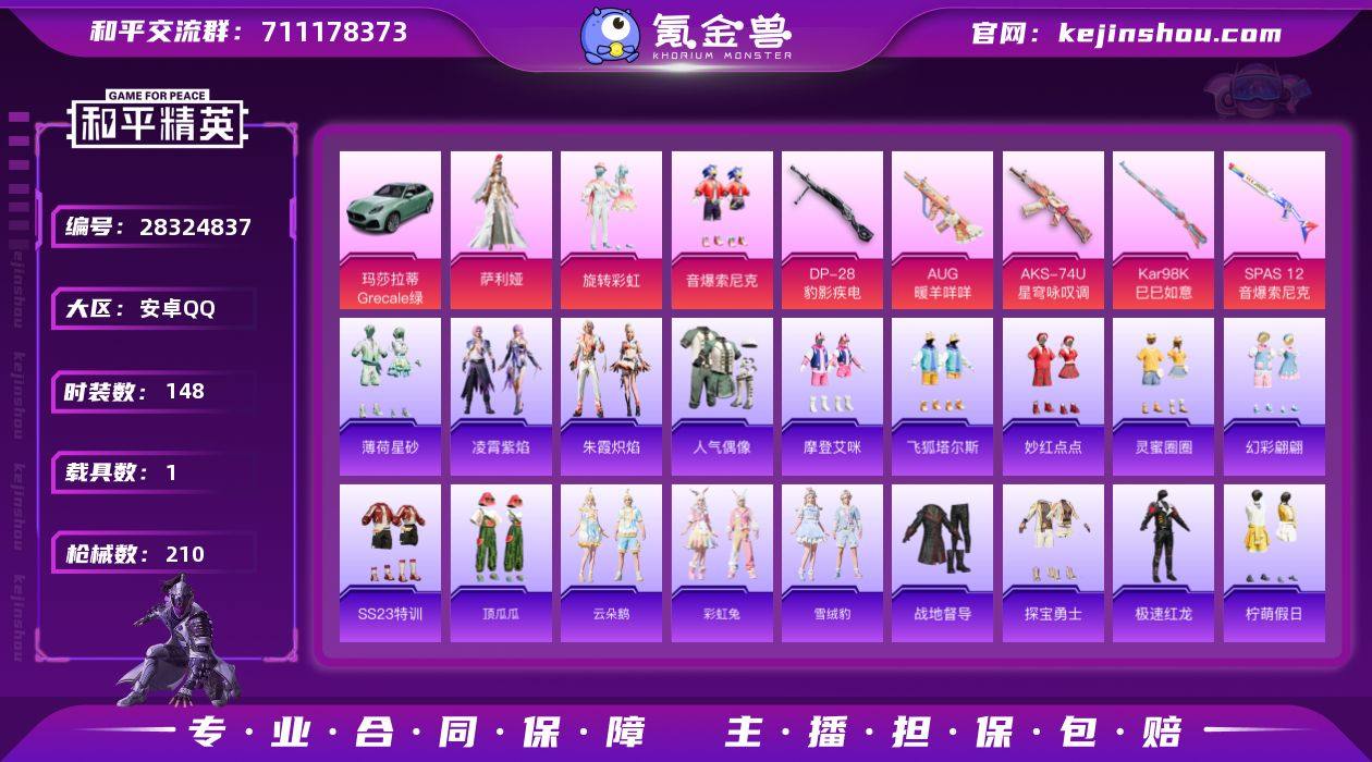 【玛莎薄荷绿 SPAS-12-音爆索尼克满级】可改实名 1载具 5特效枪1满级 3粉装 148套装 210枪械 玛莎拉蒂Grecale薄荷绿 SPAS-12-音爆索尼克7级 AUG-暖羊咩咩5级 AKS-74U-星穹咏叹调6级 萨利娅 音爆索尼克 旋转彩虹 薄荷星砂 凌霄紫焰 Mark.06 王牌印记15 热力值62915 N1836 和平精英买号永久包赔带二次营地ID:904912439