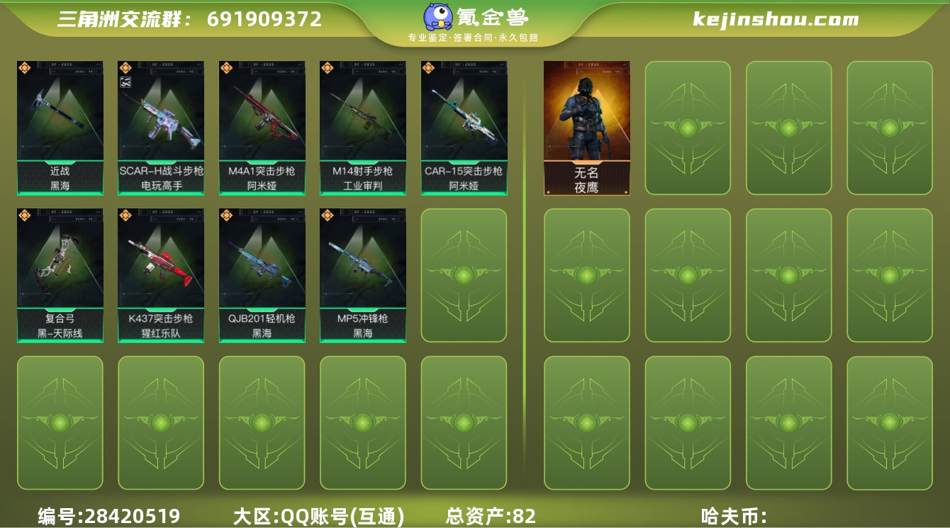 tx1016 总资产82M 烽火等级60级 天才少年徽章 S4赛季巅峰战神 SCAR-H-电玩高手(极品A) 黑海捆绑包 M14-工业审判 K437-猩红乐队 SR-3M纷争 典藏挂饰-毁灭之源 S4S5赛季通行证 无名-夜鹰 特勤处满级(仓库9级) 部门高等级 1800三角币 (可二次实名)