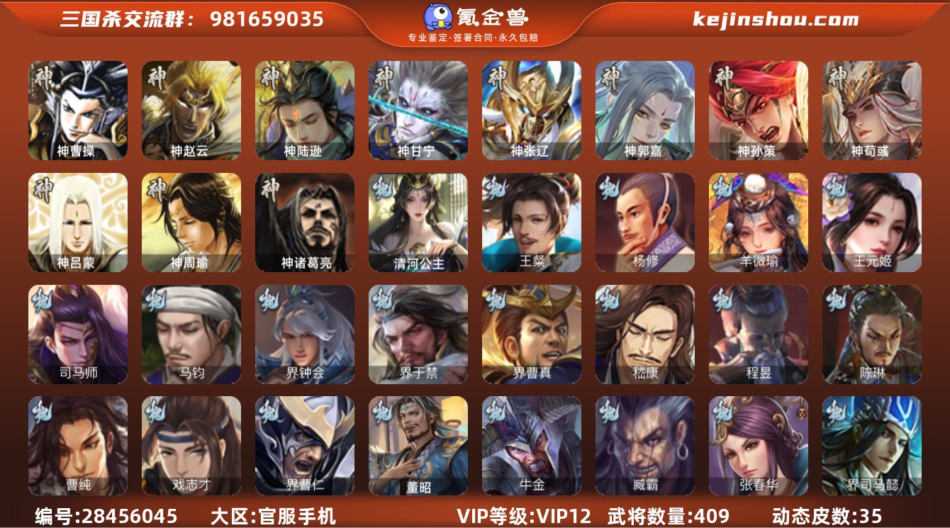 三国杀移动版官服活绑账号,有七个权一武将,神曹操,神郭嘉,神荀彧,神甘宁,美羊羊,鲍三娘,张仲景,还有51.9颗宝珠,还有王元姬,清河公主,马均,司马师,文鸯,沙摩柯,骆统,大宝,留赞,奇门孙寒华,杜预有双形态动皮。许攸,界左慈,祢衡,庞德公,南华老仙,星甘宁,星黄忠,神陆逊,神孙策。二等大将军。