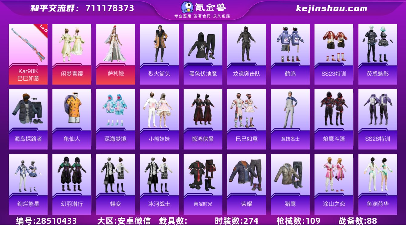 实名:不可修改 时装数:274 枪械数:109 战备数:88 萨利娅,闲梦青缨 五级Kar98K-巳巳如意