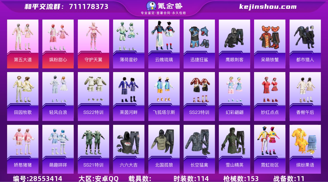 素材号 都市猎人 小丑鱼 暗影哥特 狂战萌兔 迅捷狂鲨 满级M416-五爪金龙 满级MK14-樱桃泡泡 7级Vector-飒粉甜心 9王牌印记 可改实名 5特效枪 3粉装 114套装 153枪械 5级Kar98K-巳巳如意 1级DP-28-豹影疾电 第五大道 守护天翼 飒粉甜心 夜瞳黯灵 热力值48759 K22275 和平精英买号永久包赔带二次营地ID:560221720