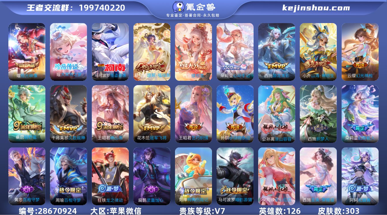苹果微区 303皮小漂亮女号 2000场低场次 全英雄 2个典藏 2个珍品 有百星印记