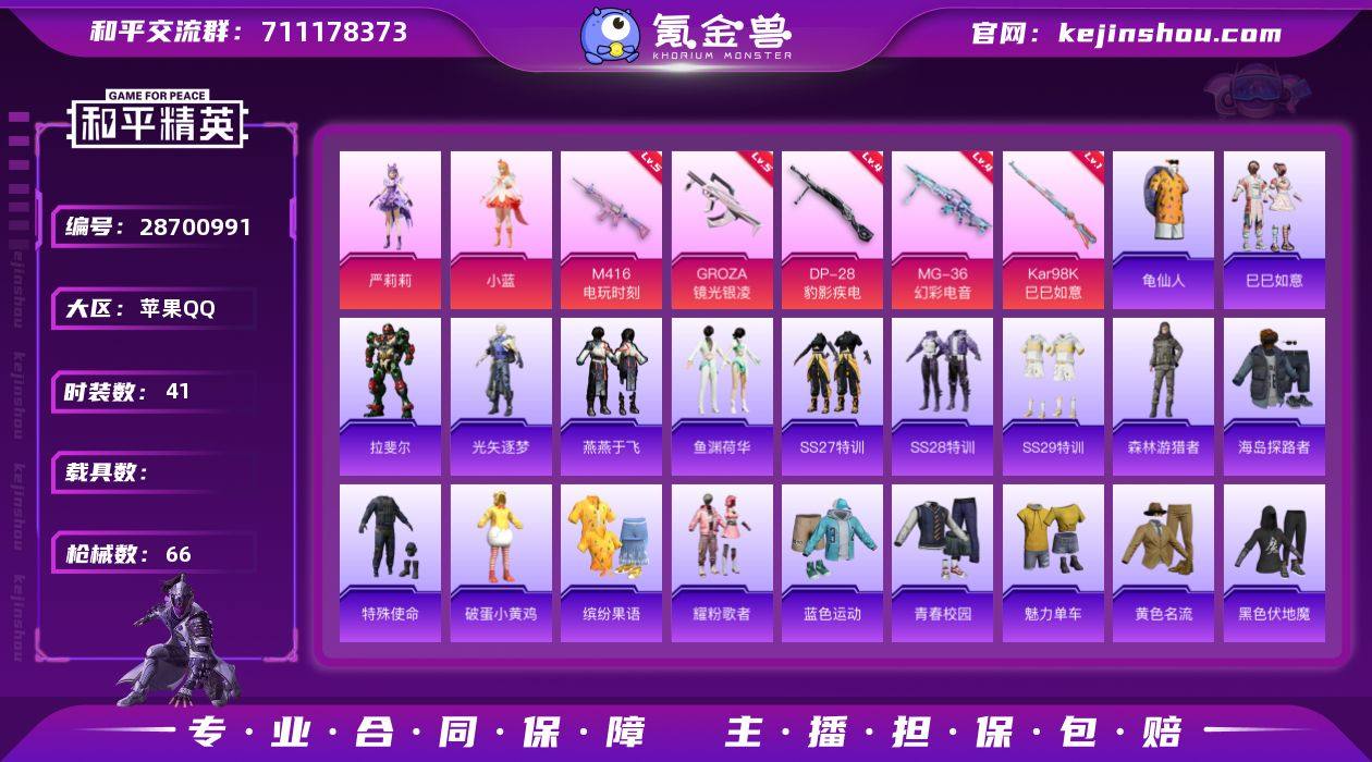 【mhp962】苹果 手Q-2粉装-5特效枪-0载具-2粉色飞行器-19030热力值-2王牌印记-41套装-66枪皮 【热门品类】:套装-龟仙人 【粉色套装】:角色-严莉莉,角色-小蓝 【粉色枪皮等级】:M416-电玩时刻(五级),GROZA-镜光银凌(五级),Kar98K-巳巳如意(一级),DP-28-豹影疾电(四级),MG-36-幻彩电音(四级) 【粉色枪皮】:M416-电玩时刻,GROZA-镜光银凌,Kar98K-巳巳如意,DP-28-豹影疾电,MG-36-幻彩电音 【粉色飞行器】:巴啦啦小魔仙飞行器 【粉色降落伞】:江南烟雨降落伞,巴啦啦小魔仙降落伞,精灵梦叶罗丽降落伞,喜羊羊与灰太狼降落伞 【稀有套装】:套装-龟仙人,套装-巳巳如意,角色-拉斐尔,角色-光矢逐梦,套装-燕燕于飞,套装-鱼渊荷华 【稀有枪皮】:AKM-破晓战魂,SCAR-L-炫彩节奏,SCAR-L-玉兔迎春,SCAR-L-红色方程式,M416-红色方程式,M416-蓝色火焰,AUG-耀粉歌者,M762-天降萌叽,M762-彩虹符号,Mk47-洛神天依,蜜獾-天降萌叽,UZI-天降萌叽,UZI-红色方程式,UZI-月影灵韵,UMP45-夜灯,UMP45-生命誓言,Vector-焰鹰斗篷,汤姆逊-天降萌叽,P90-巳巳如意,M24-幻彩电音,AWM-焰鹰斗篷,SKS-炫彩节奏,S686-生命誓言,S686-巳巳如意,S12K-夜灯,DBS-焰鹰斗篷,DBS-月影灵韵,M249-绯穹魔姬,DP-28-焰鹰斗篷,撬棍-冷漠罗丽,破片手榴弹-巳巳如意 【其他套装】:套装-SS27特训,套装-SS28特训,套装-SS29特训,套装-森林游猎者,套装-海岛探路者,套装-特殊使命,套装-破蛋小黄鸡,套装-缤纷果语,套装-耀粉歌者,套装-蓝色运动,套装-青春校园,套装-魅力单车,套装-黄色名流,套装-黑色伏地魔,套装-龟仙人,套装-焰鹰斗篷,套装-幽夜迷踪,套装-幻羽潜行,套装-纯真浪花,套装-热情海星,角色-听雨铃兰 【稀有头盔】:金羽特工头盔(1级) 【稀有背包】:金羽特工背包(2级) 【营地ID】:96136...