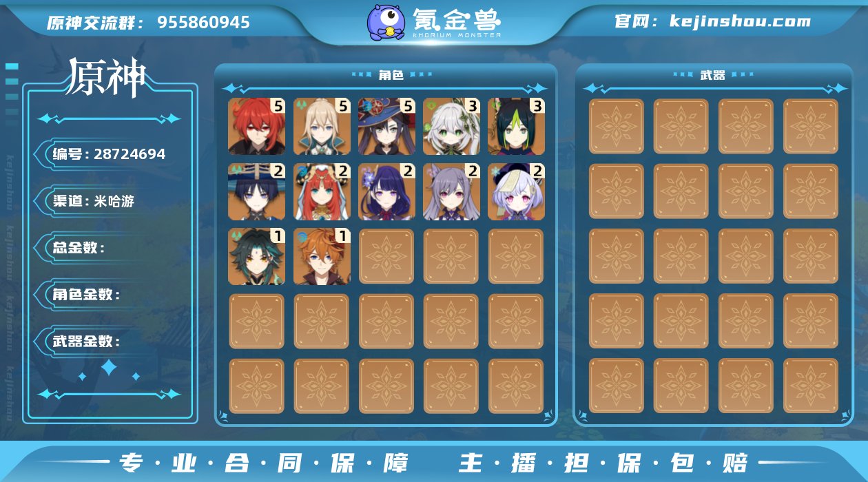 冒险等级:60 总黄数:48 5星角色数:24 5星武器数:9 原石数量:96 纠缠之源数量:4 3命刻晴,3命琴,2命雷电将军,2命提纳里,1命娜维娅,1命神里绫华,1命胡桃,1命迪希雅,1命迪卢克,0命杜林,0命菲林斯,0命丝柯克,0命瓦雷莎,0命梦见月瑞希,0命芙宁娜,0命那维莱特,0命纳西妲,0命夜兰,0命珊瑚宫心海,0命宵宫,0命枫原万叶,0命钟离,0命七七,0命莫娜 6命绮良良,6命香菱,6命行秋,6命芭芭拉,6命北斗,6命迪奥娜,6命多莉,6命珐露珊,6命九条裟罗,6命罗莎莉亚,6命诺艾尔,6命凝光,6命砂糖,6命烟绯,6命瑶瑶,5命菲谢尔,5命柯莱,5命早柚,4命爱诺,4命班尼特,4命嘉明,4命夏沃蕾,4命伊法,4命重云,4命坎蒂丝,4命莱依拉,4命托马,3命菲米尼,3命琳妮特,3命夏洛蒂,3命卡维,3命雷泽,3命五郎,2命久岐忍,2命赛索斯,2命云堇,1命雅珂达,1命卡齐娜,1命欧洛伦,1命伊安珊,1命安柏,1命丽莎,1命米卡,1命辛焱,0命叶洛亚,0命蓝砚,0命塔利雅,0命凯亚,0命鹿野院平藏 精1血染荒城,精1飞雷之弦振,精1阿莫斯之弓,精1狼的末路,精1风鹰剑,精1天空之傲,精1天空之刃,精1四风原典 100%侦察骑士,古恩希尔德的传承,星与月之约,雨化竹身,叶隐芳名,致教会自由人 卖家说:原神,绝区零连体