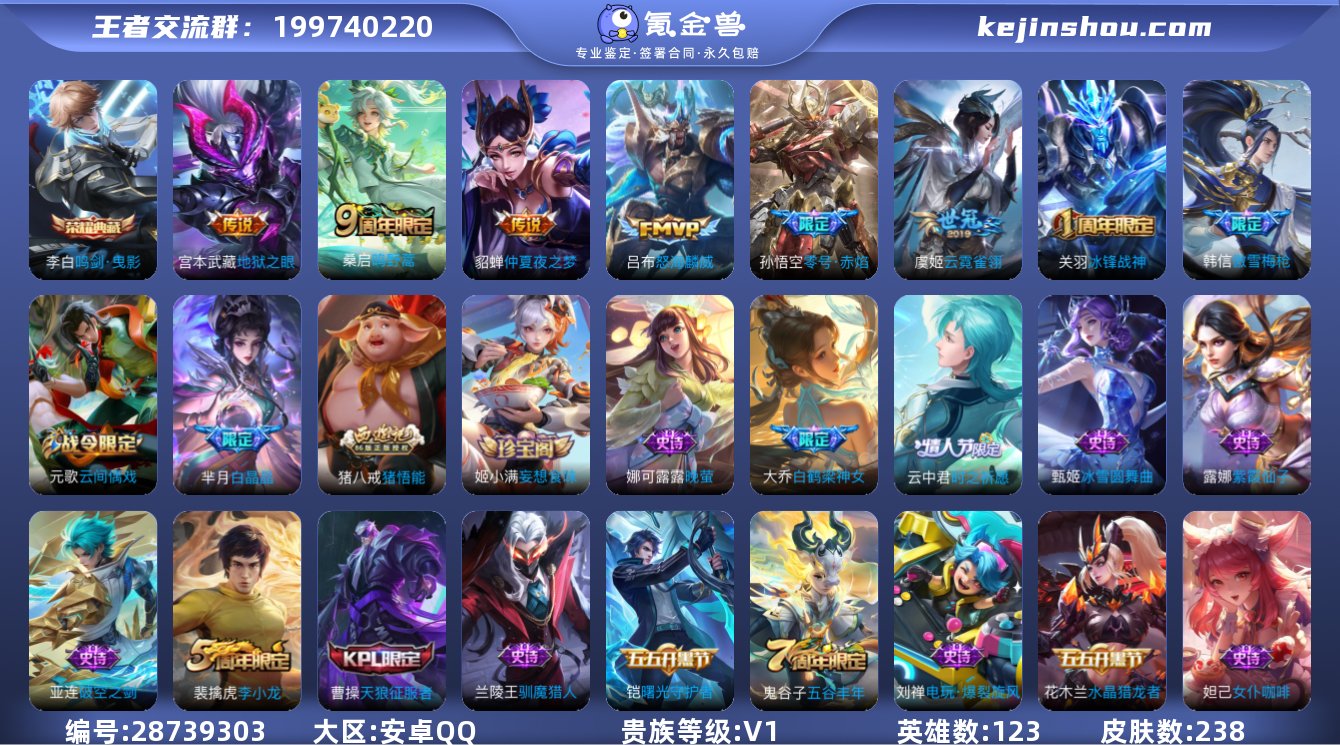 实名:不可修改 贵族等级:V1 英雄数:123 皮肤数:238 珍品无双皮肤数:0 典藏皮肤数:1 无双皮肤数:0 珍品传说皮肤数:0 传说皮肤数:6 史诗皮肤数:68 鸣剑·曳影 段位:钻石