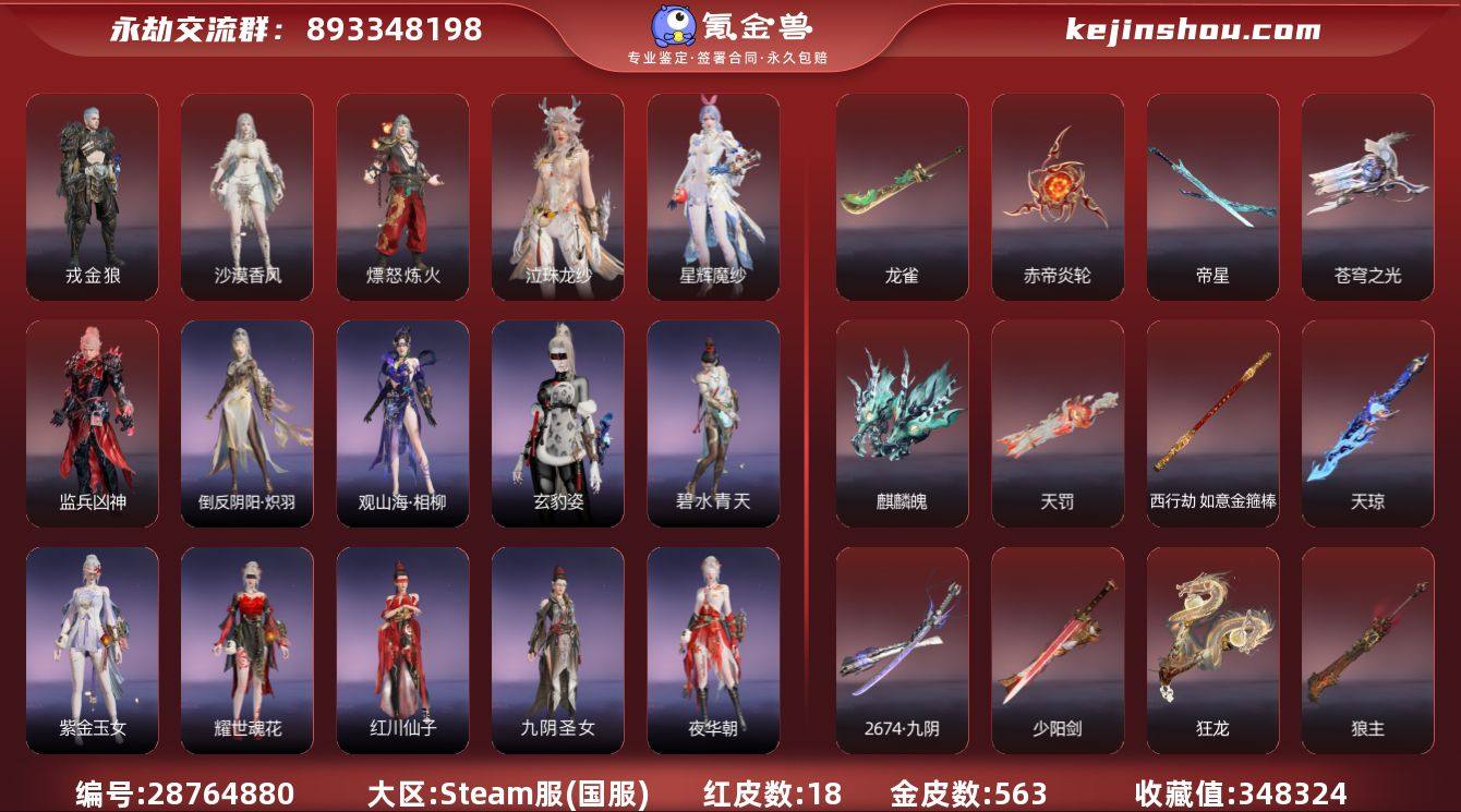 红皮数:18 黄皮数:563 收藏值:348324 幻丝数:0 等级:443 三排段位:无双修罗 通行证:已升级 戎金狼,沙漠香风,熛怒炼火,泣珠龙纱,星辉魔纱,监兵凶神 龙雀,赤帝炎轮,帝星,苍穹之光,麒麟魄,天罚,天琼,西行劫·如意金箍棒,2674·九阴,少阳剑,狂龙,狼主,毕方 墨离