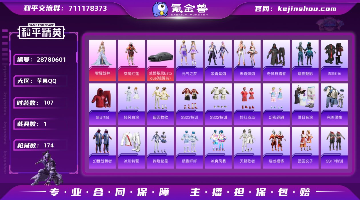 可改实名 【1载具7特效枪2粉装107套装174枪皮】IOS 兰博基尼Estoque银翼灰/满级M416五爪金龙/满级M416风花雪月/金羽特工/奇异狩猎者 可改实名 【1载具7特效枪2粉装107套装174枪皮】 4级AMR智耀战神3级SLR暗夜玫瑰 满级GROZA镜光银凌 满级SCARL锦绣绵绵 满级Kar98K巳巳如意 智耀战神 桀骜红莲 俏兔智灵 天籁歌者 凌霄紫焰 朱霞炽焰 星影赞美诗 粉恋花 紫幽梦 蓝冰羽 鱼渊荷华 锦衣飞扬 田园牧歌 绚烂繁星 轻风白浪 音速流光 冰爽风暴 赛罗奥特曼 王牌印记8 热力值51481 K23399 和平精英买号永久包赔带二次营地ID:785824803