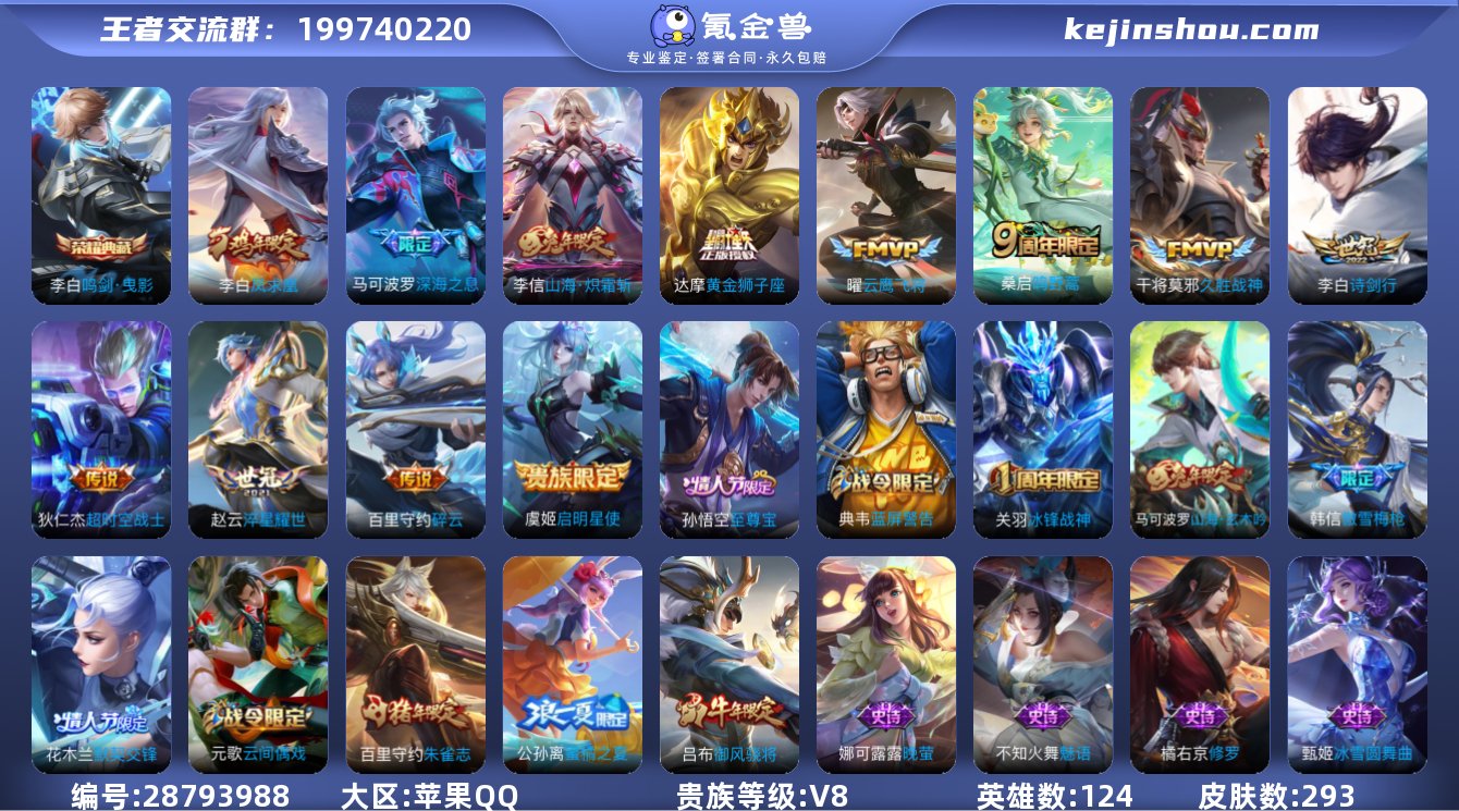 发育路27段 熬影 实名: 可修改 贵族等级: V8 英雄数: 124 皮肤数: 293 荣耀水晶: 鸣剑·曳影 传说皮: 黄金狮子座,云鹰飞将,久胜战神,淬星耀世,超时空战士-狄仁杰,碎云,山海·炽霜斩 限定皮: 冰锋战神,御风骁将,天狼溯光者,蜜橘之夏,凤求凰,朱雀志,至尊宝,如梦令-后羿,默契交锋-花木兰,傲雪梅枪,深海之息,五谷丰年,诗剑行,山海·玄木吟,鸣野蒿