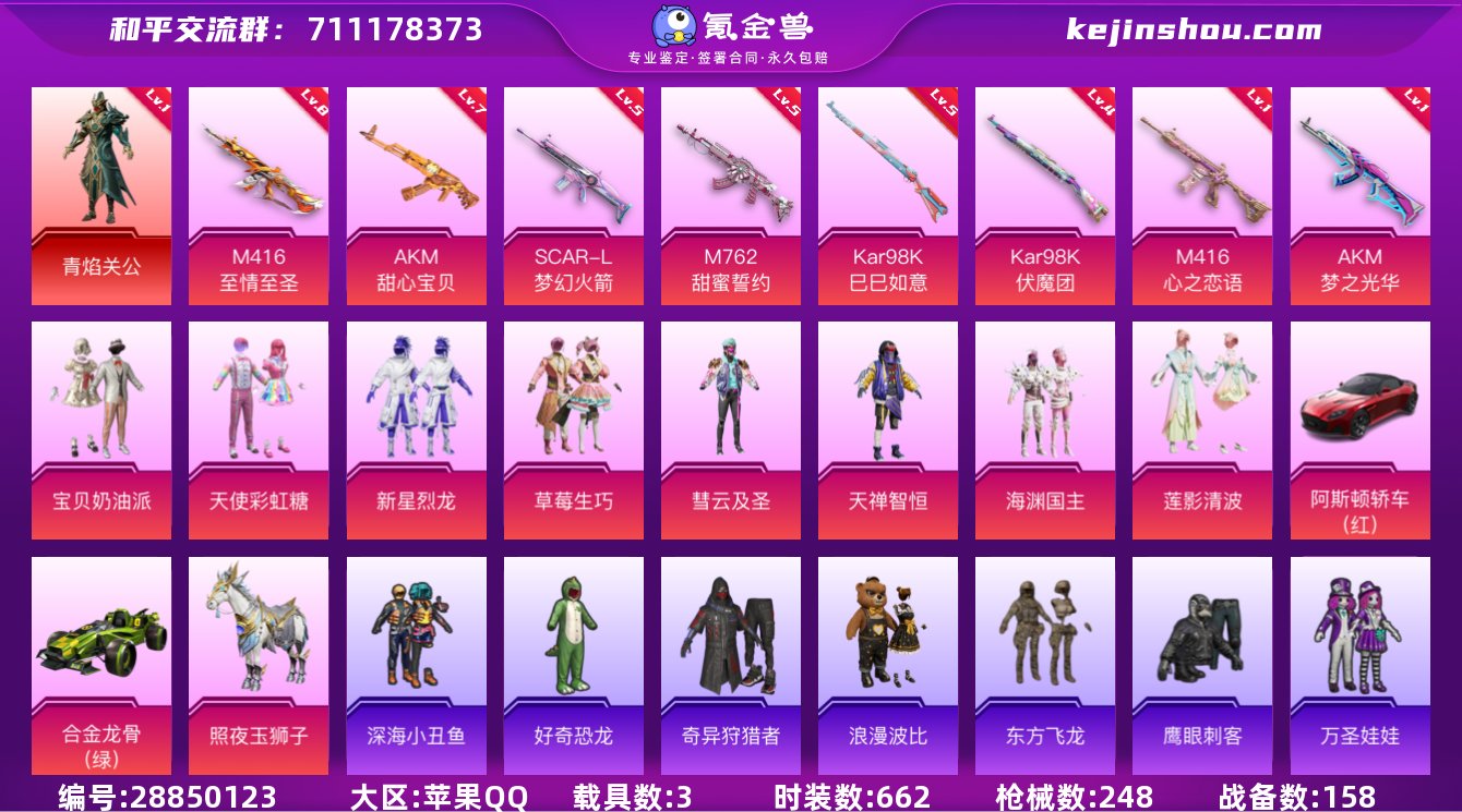 青焰关公!小丑红鼻子!照夜玉狮子!都市猎人!8.3万热力值!满级AKM-甜心宝贝!D10500.IOSQQ.168套装1红装8粉装3载具248枪皮8粉枪.小熊背包.喜欢不要错过.