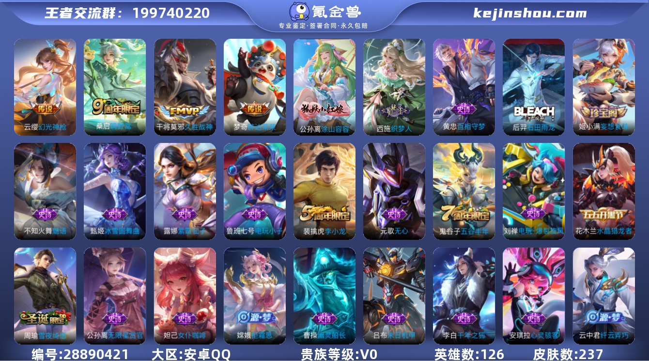 王者荣耀账号,实名可修改,V4,皮肤可上营地查看,一个荣耀水晶,星币5600+,皮肤碎片300+,价格可议