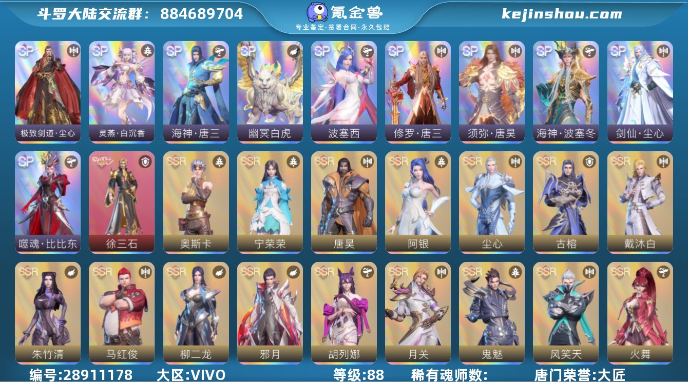 有红5星唐三,红3星SP+剑仙,彩3修罗唐三等12个SP魂师,还有37位SSR魂师(多数红星)。可以砍价