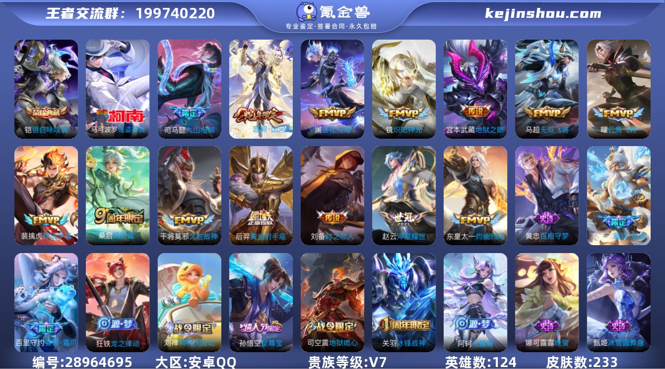 贵族等级:V7 典藏皮肤数:1 珍品无双皮肤数:0 无双皮肤数:0 珍品传说皮肤数:1 传说皮肤数:14 史诗皮肤数:62 皮肤数:233 英雄数:124 段位:钻石
