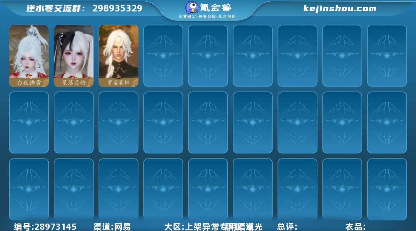 网易支付状态:可注销 换绑冷却:无冷却 职业:潮光 白夜拂雪,星落月皓,紫宿宸极