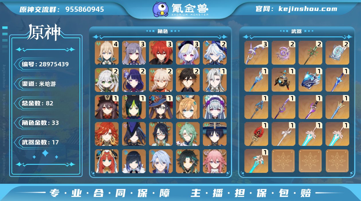 冒险等级:60 总黄数:82 男/女主:男主 5星角色数:33 5星武器数:17 纠缠之源数量:8 原石数量:5938