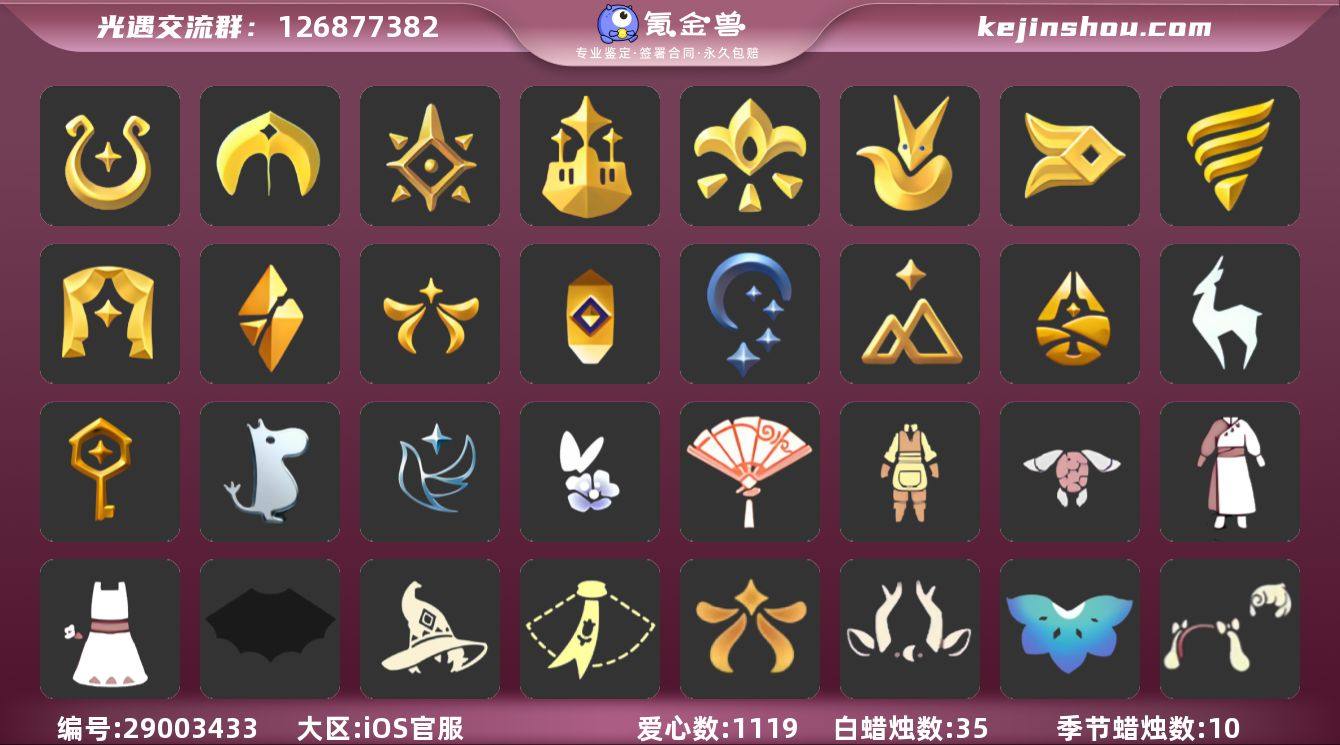 账号类型: 手机账号 季节已毕业: 魔法季,圣岛季,预言季,梦想季,小王子季,风行季,潜海季,表演季,破晓季,欧若拉季,集结季,夜行季,追忆季,拾光季,归巢季,九色鹿季,筑巢季,姆明季,青鸟季 完成地图: 全图毕业 珍稀物品: 阿努比斯(狗头),白枭,透明蝶翼斗,魔法季耳坠,玫瑰花 礼包: 蝙蝠套,巫师,围巾,欧若拉之翼,九色鹿角,莲花斗,大耳狗装扮,大耳狗服饰,绊爱,鹿角,荷叶伞,蜘蛛斗,秋千,茶桌,茶壶,餐桌,瑞雪,女巫裙,福娃,跷跷板,小船,吉他,灯笼,风之旅人,人声乐器,彩虹帽,绒帽,橘子,贝壳,黄伞,红伞,兔子,南瓜,雪花,鲤鱼,tgc,水母,猫背饰,星月头饰,彩虹耳钉,雪怪斗,新年裤,蝴蝶结,魔法棒,海螺,四叶草,暗彩装扮,向日葵套,小提琴,雪人鞋,新年耳钉,浪漫流星斗,创始人,海蓝波浪发型,日光耳环,向日葵连衣裙,龙鳞束身长袍,海龟斗篷,园丁装扮,献瑞折扇礼包,蝴蝶与花发饰礼包 裤子: 武士裤 面饰: 必胜客联动面饰 发型: 正太,花环,樱花,公主,书虫,虚荣,猫耳,老兵凌乱发型,冥龙长辫 头饰: 必胜客联动礼帽 斗篷: 必胜客联动斗篷