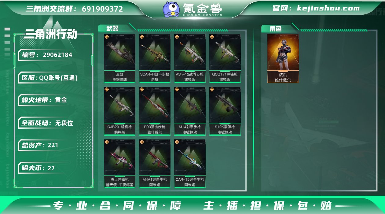 hf8799总资产221m纯币27m+s6赛季3x3安全箱+维什戴尔全套+电锯惊魂全套+鹅鸭杀全套+烽火等级60+特勤部门等级可以+永久包赔