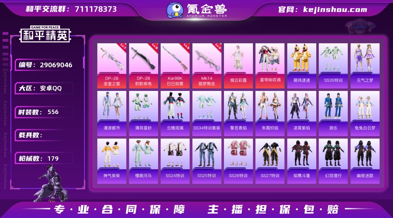 【2粉装4特效枪烟云彩露DP-28-圣堂之誓(7级)】 安卓Q区-51528热力值-9印记-143套装-179枪皮 【2粉装】 角色-烟云彩露 星穹咏叹调【4特效枪】 DP-28-圣堂之誓(7级) DP-28-豹影疾电(5级) Kar98K-巳巳如意(5级) Mk14-甜梦熊击(5级)【4热门】 极速红龙 MG3-乌木金纹 M249-妙红点点 M416-糯团青竹 营地ID:782330603