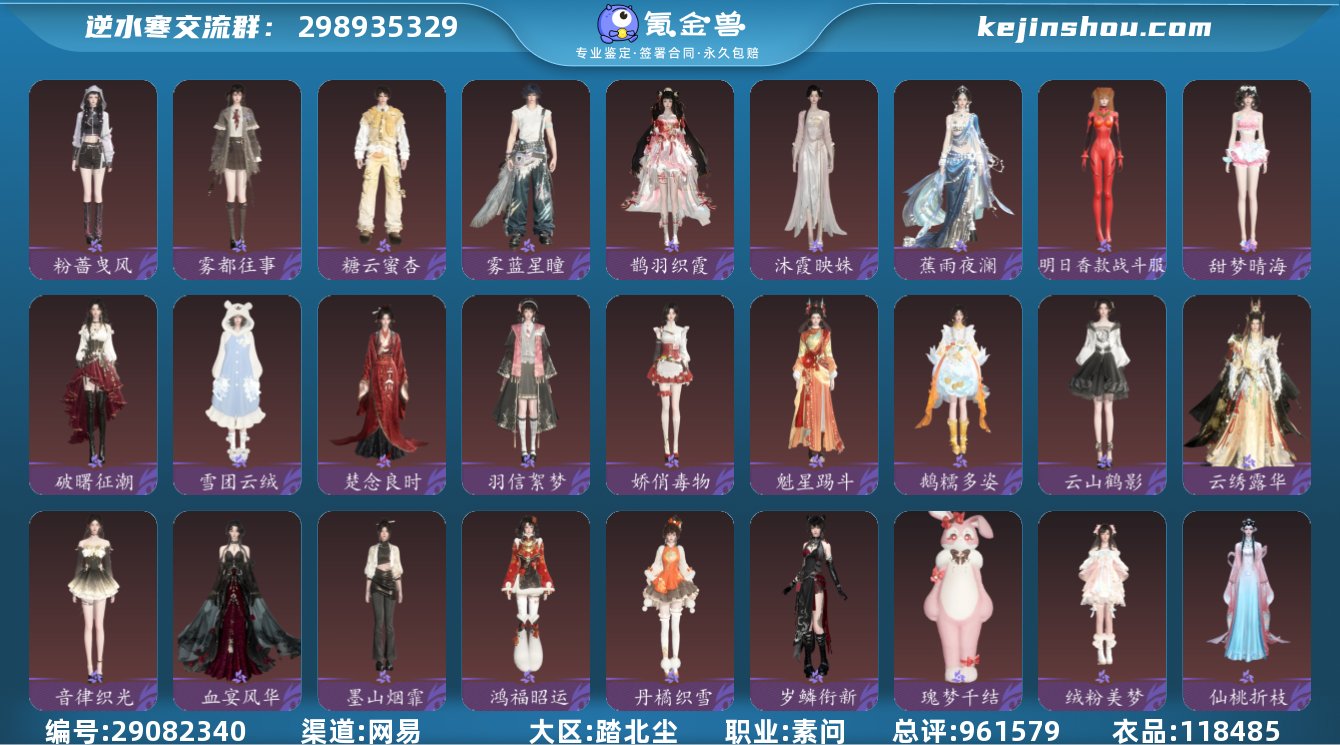 网易支付状态:不可注销 换绑冷却:无冷却 职业:素问 总评:961579 衣品:118485 粉蔷曳风,雾都往事,糖云蜜杏,雾蓝星瞳,鹊羽织霞,沐霞映姝,蕉雨夜澜,明日香款战斗服,甜梦晴海,破曙征潮,雪团云绒,楚念良时,羽信絮梦,娇俏毒物,魁星踢斗,鹅糯多姿,云山鹤影,云绣露华,音律织光,血宴风华,墨山烟霏,鸿福昭运,丹橘织雪,岁鳞衔新,瑰梦千结,绒粉美梦,仙桃折枝,绛英流芳,悬蛛结心,狸奴颂锦,平野星罗,玉蕊含梅,霜天凝露,金翎琼枝,晴岚蜃海,幽兰沐月,纯白心绪,幽蝶眠花,凤吟振羽,跃动心芒,恣行无拘,灵语星彩,呱容月貌,丹枫秋意,四海无拘,烟黛粉墨,茸客衔春,露染芙蕖,锦尾芊芊,兰亭觞咏,贪狼摄星,衣香鬓影,灵兔献瑞,斗墨金枢,白尘游昼,白灵雪魅,迷迭萧疏,青溪春信,楚楚浅茉,鳞衫丽织,千山如织,聆萤语,霸揽长霄,天狼北顾,清露漱雨,春梢剪锦,花朝春信,如意瑞喜 骋风叱焰,木小马